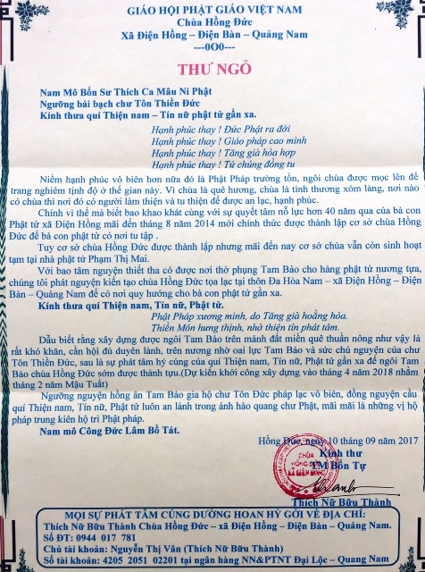 Ngưỡng mong chư Phật từ bi gia hộ, kính mong quý thiện nam – tín nữ chung tay góp sức cùng vị sư trẻ ở ngôi chùa quê hoàn thành tâm nguyện.