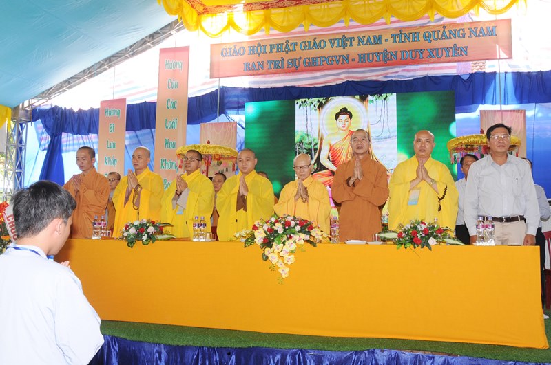 Về phía chính quyền có ông Mai Quang Vĩnh – Phó phòng Nội Vụ huyện Duy Xuyên; ông Nguyễn Trường Chiến – Phó Chủ tịch UBND xã Duy Hải; ông Lê Công Lưu – Phó Chủ tịch UBMT xã, cùng đại diện các ban ngành tại địa phương, quý Phật tử và hơn 500 các bạn tình nguyện viên, khóa sinh tham dự.