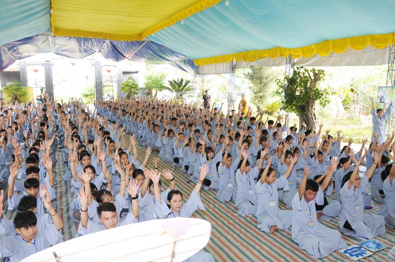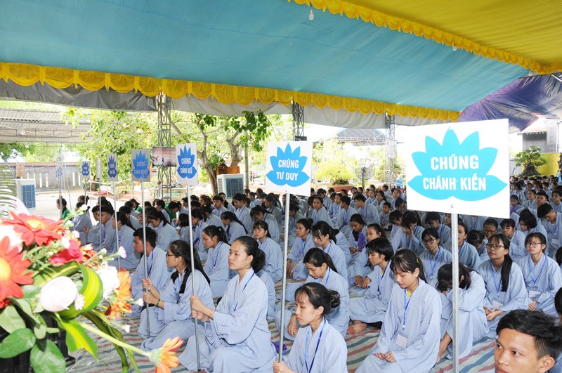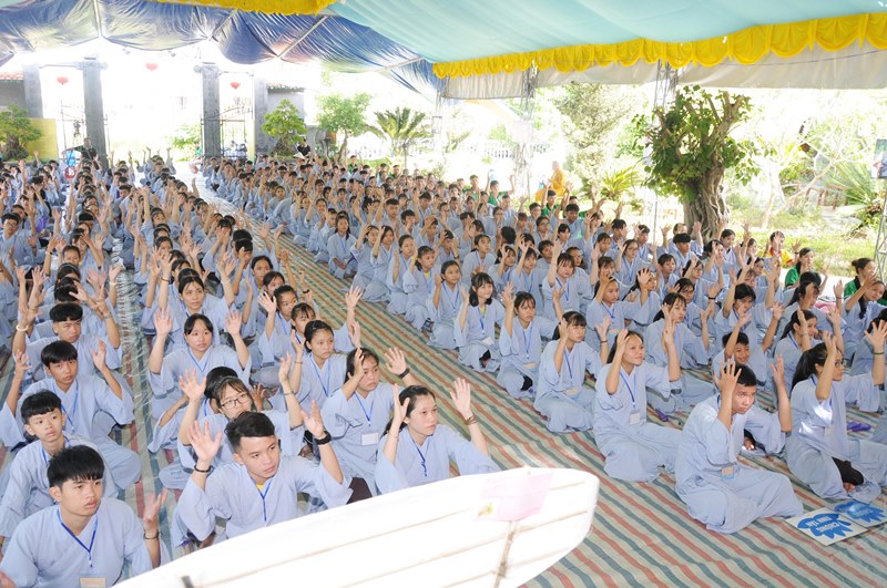 Theo chương trình khóa tu mùa hè, diễn ra từ ngày 28 đến 30-6-2019 với các nội dung: thực tập chánh niệm trong các oai nghi hằng ngày; nghe các pháp thoại (Cuộc đời đức Phật, chữ hiếu trong đạo Phật, thực hành chánh niệm bền vững); thi hồi trống pháp; hướng dẫn kỹ năng sử dụng mạng xã hội; trò chơi “Điều phục thân tâm, gắn kết vạn duyên”, “Cân tài cân sức”; văn nghệ, thắp nến tri ân, đốt lửa trại, tọa thiền trên bãi biển lúc bình mình…