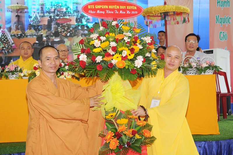 Quang lâm chứng minh và tham dự buổi lễ có HT. Thích Huệ Thông – Chứng minh BTS GHPGVN huyện Duy Xuyên; ĐĐ. Thích Như Giải – UV TT BTS PG tỉnh Quảng Nam, Trưởng ban HDPT PG tỉnh, Trưởng BTS PG huyện Duy Xuyên; ĐĐ. Thích Viên Hải – UV TT BTS PG tỉnh; Phó ban kiêm Chánh thư ký Ban HDPT PG tỉnh; ĐĐ. Thích Viên Phước – UV BTS PG tỉnh, Phó ban HDPT kiêm Trưởng PB TTNPT PG tỉnh; ĐĐ. Thích Thông Huệ – UV BTS PG tỉnh, Phó ban TT BTS kiêm Trưởng ban Hoằng pháp PG huyện Duy Xuyên; ĐĐ. Thích Pháp Lạc – UV BTS tỉnh, Phó BTS PG huyện; ĐĐ. Thích Thông Thắng – Phó BTS kiêm Trưởng ban HDPT PG huyện, Trưởng ban Tổ chức khóa tu, cùng chư Tôn đức Tăng Ni đến từ các tự viện trong và ngoài huyện Duy Xuyên.