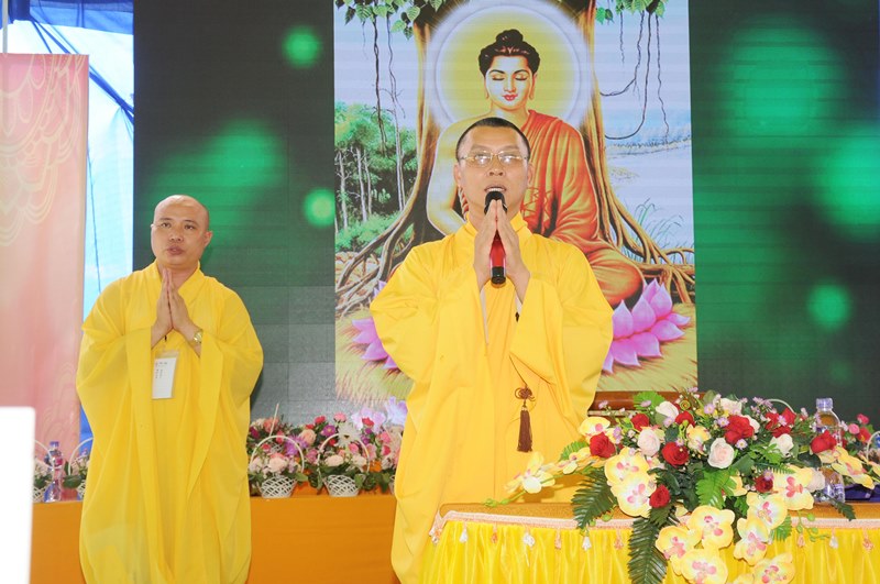ĐĐ. Thích Thông Thắng – Phó BTS kiêm Trưởng ban HDPT PG huyện Duy xuyên, Trưởng ban Tổ chức khóa tu phát biểu khai mạc, bày tỏ niềm tri ân đến chư Tôn đức lãnh đạo các cấp Giáo hội, chư tôn đức Tăng Ni và các cấp chính quyền, đã tạo điều kiện thuận lợi để khóa tu được diễn ra.