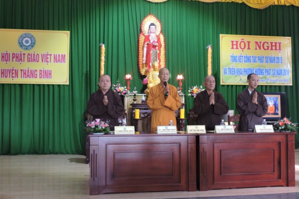 TT.Thích Phước Hưng chủ trì hội nghị phát biểu khai mạc cho biết, Phật giáo huyện Thăng Bình trong thời gian qua đã có bước chuyển biến phát triển tích cực, nhất là các công tác Phật sự được chư tăng ni đồng lòng ủng hộ. Đặc biệt, những vị tăng ni trẻ mới giới thiệu về các cơ sở tự viện đã triển khai nhiều công tác Phật sự nổi bậc… Thượng tọa cũng mong rằng trong chương trình Phật sự năm 2016 chư tôn đức tiếp tục tham gia, góp phần xây dựng Phật giáo huyện nhà ngày càng phát triển.