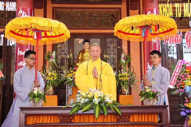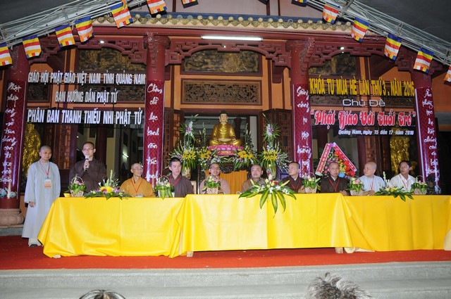 Đại đức Thích Viên Phước, Phó trưởng ban HDPT kiêm Trưởng Phân ban TTNPT tỉnh, trưởng BTC khoá tu phát biểu khai mạc bày tỏ niềm tri ân đến chư tôn đức Thường trực BTS PG tỉnh, BTS PG Tam Kỳ, chư tôn đức Tăng Ni; các cấp chính quyền tạo điều kiện thuận lợi để khoá tu được diễn ra. Đại đức nhấn mạnh “Với tâm nguyện phụng sự chúng sanh cúng dường chư Phật và để góp một phần trách nhiệm cùng với xã hội giáo dục thể hệ trẻ từ khi các em còn ngồi trên ghế nhà trường, giúp các em tìm hiểu Phật pháp, trau dồi đạo đức, rèn luyện kỹ năng sống, phát triển nhận thức về các mối quan hệ xã hội, biết sống tri ân và báo ân trong tinh thần từ bi và trí tuệ của đạo Phật. Để từ đó các em có thái độ sống đúng đắn, lạc quan, tích cực, có ý thức trách nhiệm là nền tảng cho cuộc sống hạnh phúc, góp phần xây dựng xã hội văn minh, đất nước giàu đẹp”.