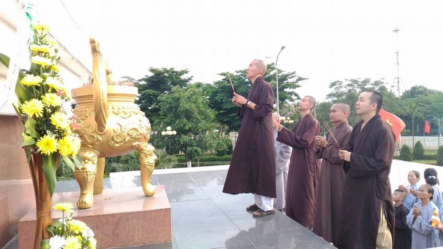 Trước đó, vào lúc 17giờ tại đài tưởng niệm liệt sĩ huyện Núi Thành, chư tôn đức Ban Trị sự GHPGVN trong huyện cùng quý đạo hữu, cư sĩ phật tử đã đến đặt vòng hoa và dâng hương tưởng niệm các anh hùng liệt sĩ nhân tuần lễ Phật đản PL.2560.