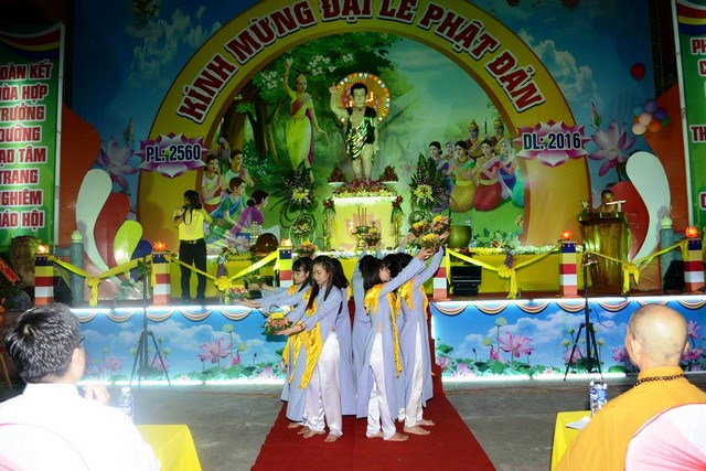 Sau các tiết mục văn nghệ chào mừng Phật đản do các em phật tử biểu diễn, Lễ Phật đản chính thức được diễn ra. HT.Thích Thiện Thành, tuyên đọc nguyên văn bức Thông điệp Phật đản của Đức Pháp Chủ GHPGVN gửi đến toàn thể Tăng Ni trong và ngoài nước.
