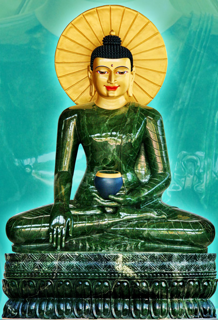 Phật Ngọc Hòa Bình Thế Giới được xem là pho tượng lớn nhất và trang nghiêm nhất trên thế giới hiện nay được điêu khắc từ tảng ngọc thạch. Tượng Phật (kể cả pháp tòa và đài sen) có chiều cao 3,5 m. Với chiều kích và vẻ đẹp của tôn tượng, Phật Ngọc này được vinh danh là kỳ quan của thế giới hiện nay.