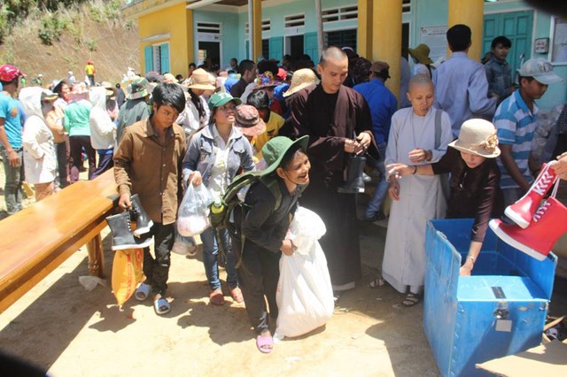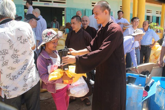Đại diện cho toàn đoàn Đại đức Thích Tịnh Đức cho biết: “Việc làm Từ thiện là không chỉ riêng ai, mọi người đều có thể phát tâm làm, đặc biệt chúng ta là những người con Phật luôn trãi rộng lòng từ bi đến với những nơi còn quá thiếu thốn và hi vọng trong chuyến đi lần này sẽ chia sẽ được phần nào chút ít khó khăn cho trường Tiểu học bà con trong xã, cũng như mang đến cho người dân nghèo nơi đây có được sự chuẩn bị cho mùa mưa sắp đến được ổn định hơn”. Đó là lời Phát biểu của vị đại diện đoàn trước sự có mặt của ông chủ tịch xã và các Phật tử đi theo đoàn.