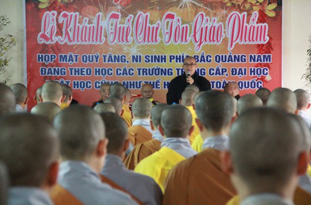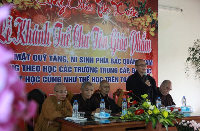Sau khi toàn thể Tăng Ni sinh thành tâm đảnh lễ Tổ sư khai sơn Tổ đình Chúc Thánh và liệt tổ truyền thừa để thể hiện tấm lòng tri ân của đàn hậu học đối với các bậc Tổ sư dày công giáo hóa. ĐĐ.Thích Chúc Hiếu thay mặt toàn thể Tăng Ni sinh đảnh lễ khánh tuế chư tôn đức Giáo phẩm nhân dịp xuân Đinh Dậu, cầu nguyện chư tôn đức, pháp thể khinh an, là tàn đại thọ chở che cho đàn hậu học.