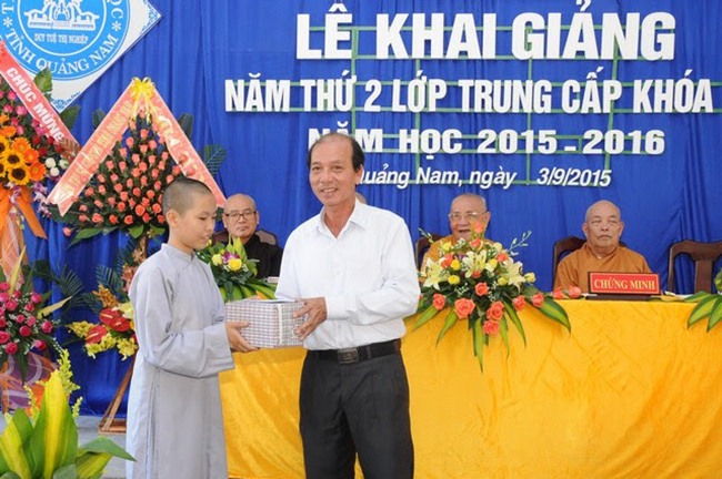 Ông Lê Thái Bình, Phó Chủ tịch UBMTTQVN tỉnh Quảng Nam; ông Đỗ Vạn Bình, Phó trưởng Ban Tôn giáo tỉnh; ông Ông Phạm Phú Tốc, Phó phòng An ninh Xã hội PA.88 – Công an tỉnh; các vị đại diện chính quyền TP.Tam Kỳ, phường Tân Thạnh cũng đã đến tham dự và phát biểu chúc mừng những thành tựu học tập và mừng năm học mới tại Trường Phật học tỉnh Quảng Nam.