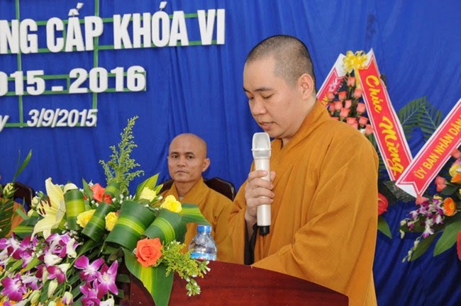 Ông Đỗ Vạn Bình phát biểu chúc mừng. HT.Thích Thiện Duyên ân cần tán dương những nỗ lực của thầy và trò Trường Phật học của tỉnh, khéo khắc phục những khó khăn, làm tốt bổn phận dạy và học – đào tạo thế hệ Tăng Ni trong thời kỳ mới cho Phật giáo, ngày càng theo kịp tiến trình phát triển của xã hội, xứng đáng với niềm tin của Giáo hội trong hoằng truyền chánh pháp, tiếp dẫn hậu lai, báo Phật ân đức.