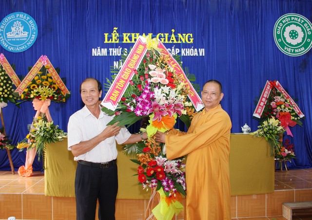 Về phía lãnh đạo các cấp chính quyền có Ông Đỗ Vạn Bình, Phó trưởng ban Tôn giáo tỉnh Quảng Nam; cùng các vị đại diện các Ban, Ngành tỉnh, TP.Tam Kỳ và phường Tân Thạnh sở tại đã đến tham dự phát biểu và tặng hoa chúc mừng những thành tựu học tập và mừng năm học mới.