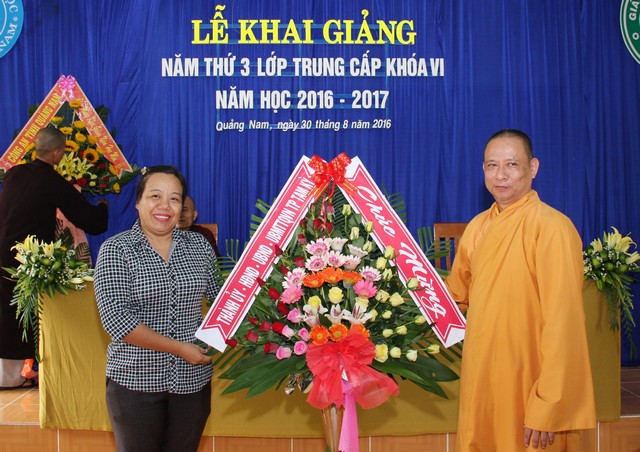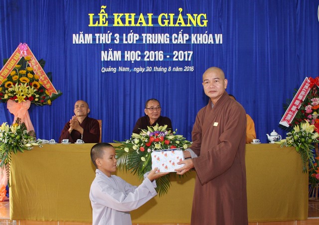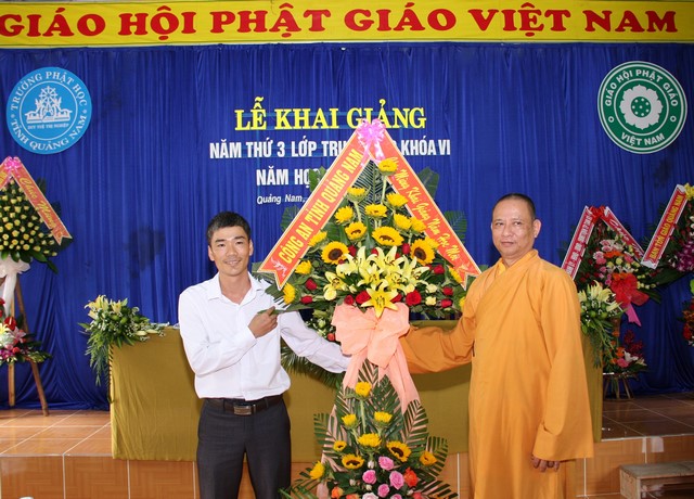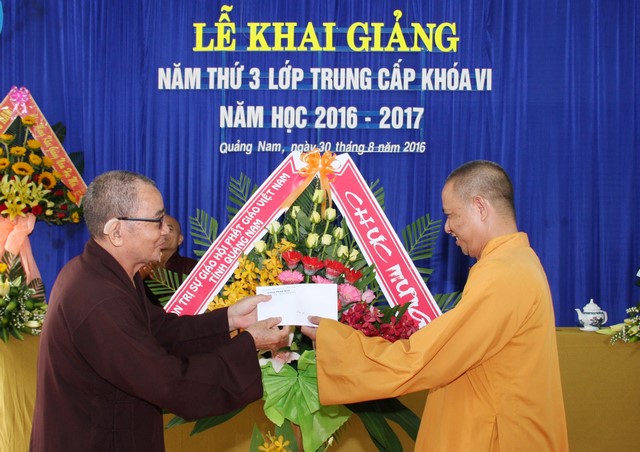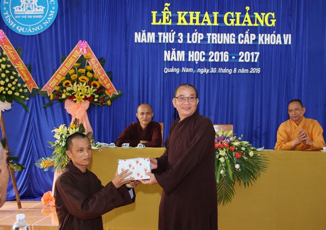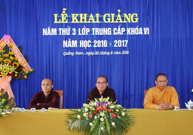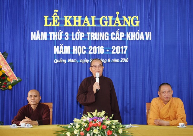 Sau lời phát biểu chúc mừng của ông Đỗ Vạn Bình – Phó ban Tôn giáo tỉnh; Thượng tọa hiệu trưởng đã gióng lên hồi trống, đánh dấu bước ngoặc mới trong ngày khai giảng năm học thứ 3 (2016 – 2017) của khóa VI trường Phật học Quảng Nam.