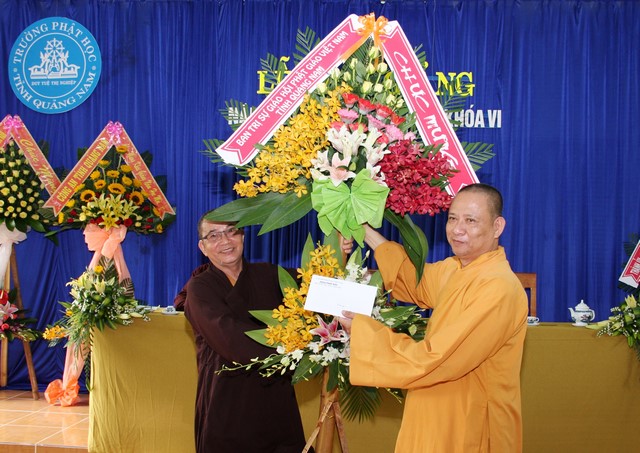 ĐĐ.Thích Huệ Hạnh, Phó Hiệu trưởng trường Phật học Quảng nam, báo cáo kết quả học tập trong năm qua. Theo đó, chương trình giảng dạy của nhà trường dựa theo chương trình của ban Giáo dục Trung ương Giáo hội đề ra. Trong năm qua, đã có 53 Tăng Ni theo học lớp trung cấp với 08 TNS đạt học lực loại giỏi, 12 khá, 17 trung bình, 10 yếu và 6 kém. Từ sự nỗ lực học tập của Tăng Ni sinh và truyền đạt tận tình của Giáo thọ sư, Ban Giám hiệu đã xét trao thưởng cho 1 TNS đạt hạng nhất, 3 TNS hạng nhì và 1 TNS về hạnh kiểm tốt.
