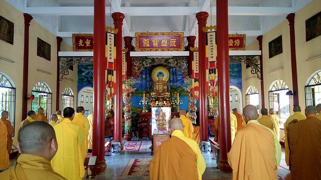Tại lễ bố-tát, ĐĐ.Thích Chánh Huệ đọc tụng giới bổn, ĐĐ.Thích Viên Trừng đọc tụng giới bồ-tát, nhằm giúp chư tỳ kheo luôn sống trong tinh thần của giới luật, thúc liễm thân tâm, trau dồi giới, định, tuệ.