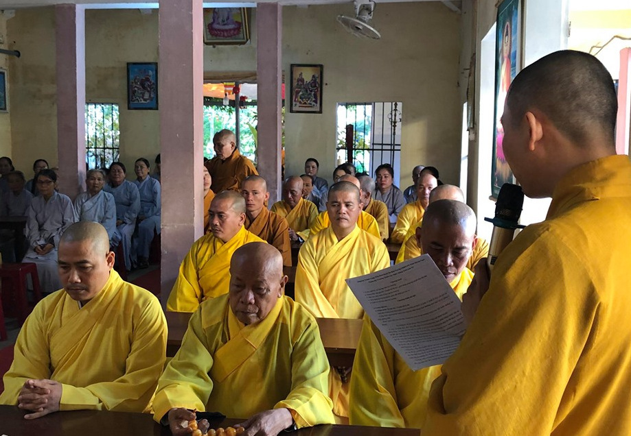 Thay mặt ban thư ký, ĐĐ. Thích Đồng Hạnh báo cáo tình hình tu học của đại chúng hành giả an cư hơn 1 tháng rưỡi qua cũng như các hoạt động của Trường hạ trong thời gian còn lại.