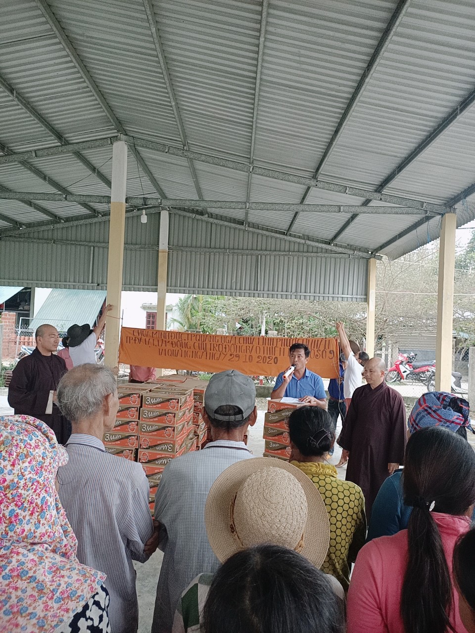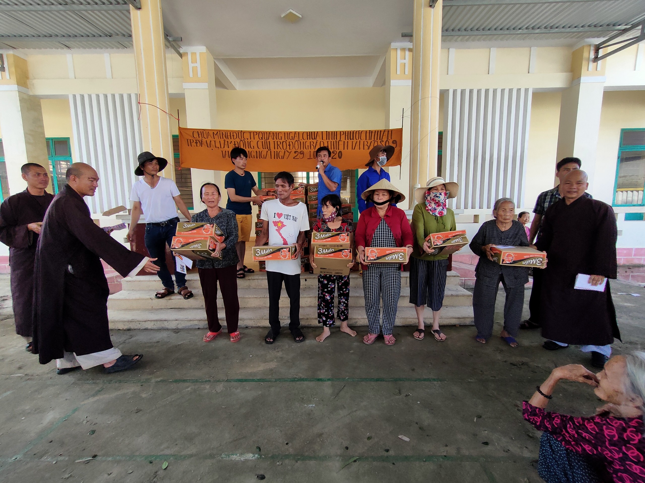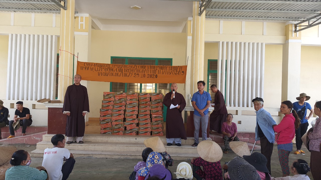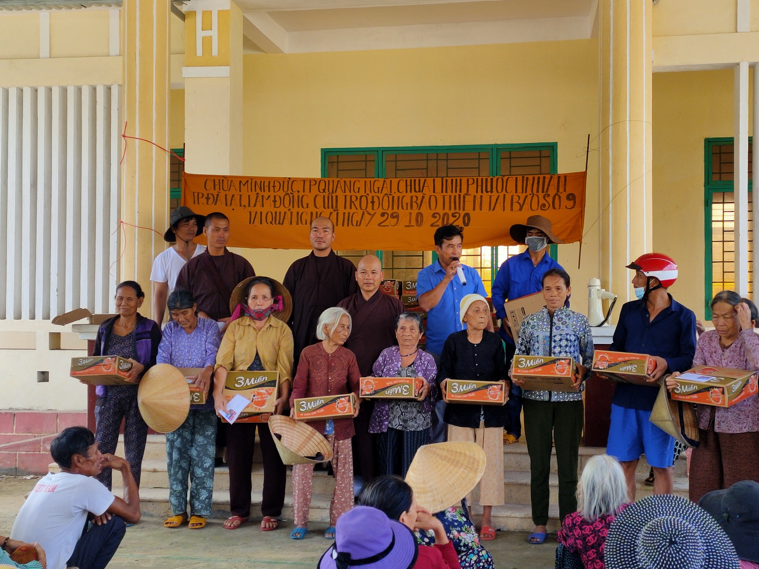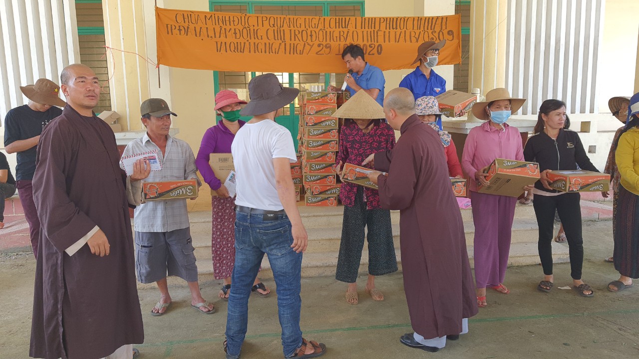 Chiều ngày 29/10/2020, dưới sự chỉ đạo và tổ chức của Thượng tọa Thích Tâm Vị, trụ trì chùa Minh Đức (Tp Quảng Ngãi ); chùa Linh Phước – Đà Lạt; chùa Linh Ẩn – Lâm Hà – Tỉnh Lâm Đồng, chư Tăng và Phật tử đã đến tận nơi phát 500 phần quà (mỗi phần quà trị giá 300.000 đ) đến với bà con nhân dân thuộc các thôn: Thôn Sơn Trà – 130 phần quà; Thôn Tân Hy 1 – 130 phần quà; Thôn Tân Hy 2 – 130 phần quà, Thôn Thượng Hoà – 110 phần quà (các thôn thuộc Xã Bình Đông, Huyện Bình Sơn – Quảng Ngãi). Đây là những phần quà cấp tốc kịp thời để giúp đồng bào trong cơn khó khăn.