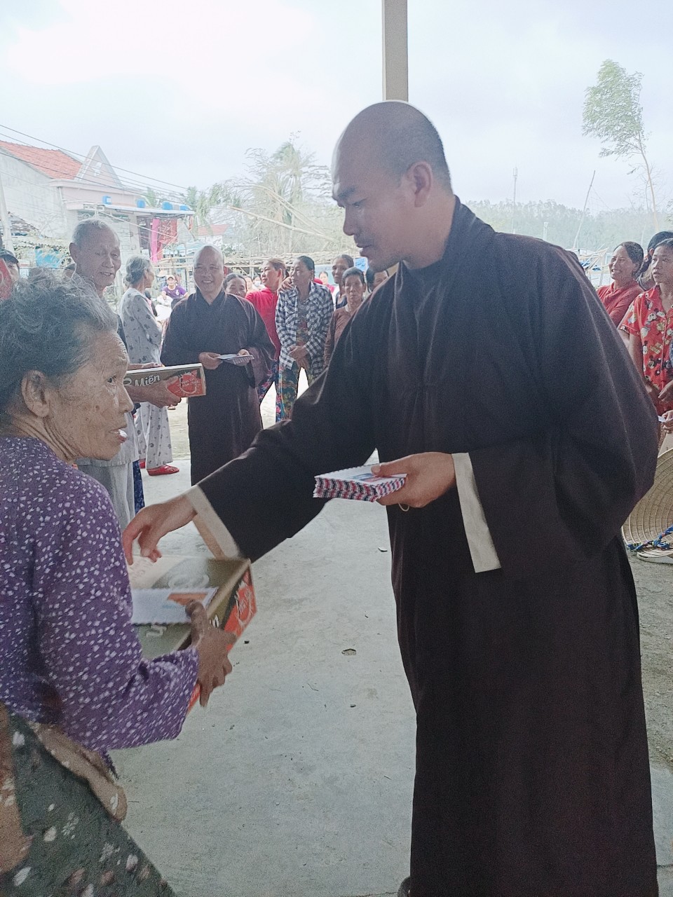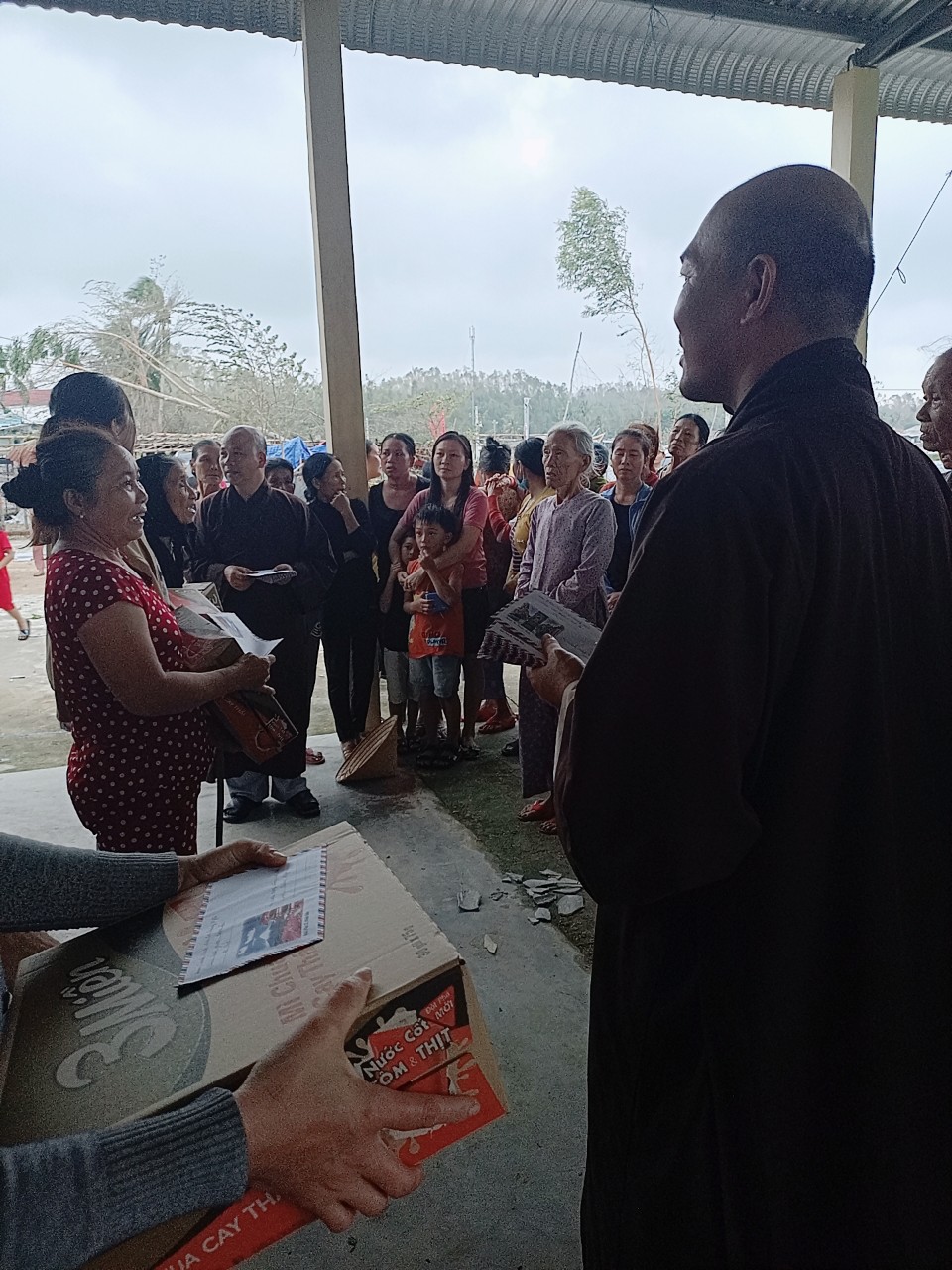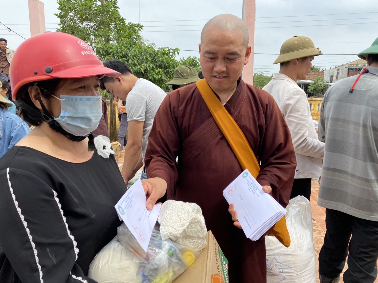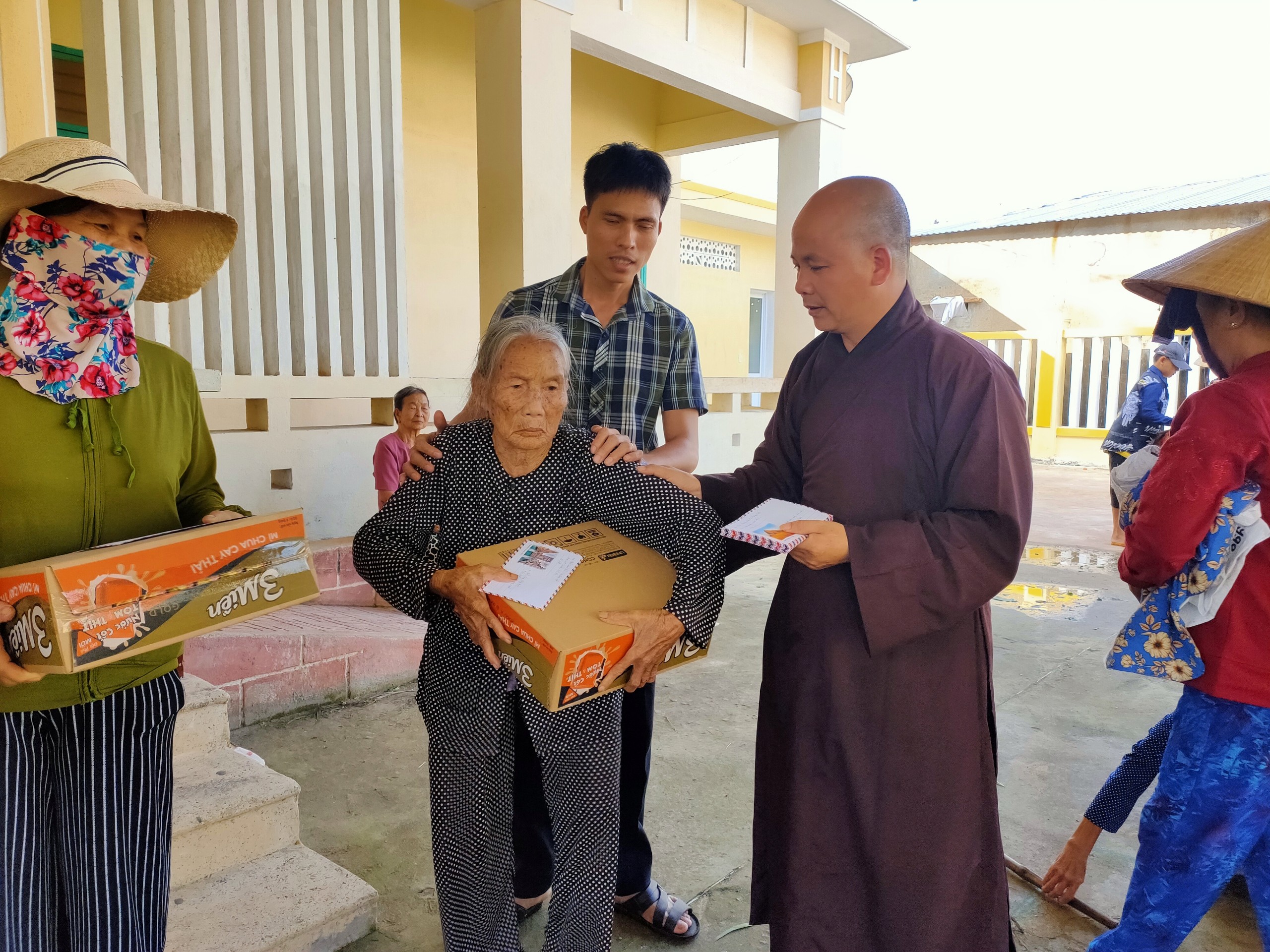 Chiều ngày 29/10/2020, dưới sự chỉ đạo và tổ chức của Thượng tọa Thích Tâm Vị, trụ trì chùa Minh Đức (Tp Quảng Ngãi ); chùa Linh Phước – Đà Lạt; chùa Linh Ẩn – Lâm Hà – Tỉnh Lâm Đồng, chư Tăng và Phật tử đã đến tận nơi phát 500 phần quà (mỗi phần quà trị giá 300.000 đ) đến với bà con nhân dân thuộc các thôn: Thôn Sơn Trà – 130 phần quà; Thôn Tân Hy 1 – 130 phần quà; Thôn Tân Hy 2 – 130 phần quà, Thôn Thượng Hoà – 110 phần quà (các thôn thuộc Xã Bình Đông, Huyện Bình Sơn – Quảng Ngãi). Đây là những phần quà cấp tốc kịp thời để giúp đồng bào trong cơn khó khăn.