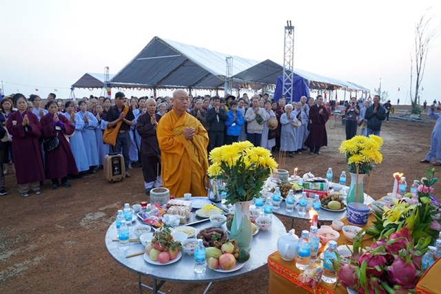 Cuối cùng, Thượng Tọa Thích Tâm Vị đã đọc lời cảm tạ đến Chư tôn thiền đức Tăng Ni, Phật tử, cảm ơn quý vị lãnh đạo Đảng, chính quyền Tỉnh, Thành phố và địa phương đã nhận lời mời đến để gia tâm cầu nguyện cho lễ rót đồng, đúc Đại hồng chung được thành tựu viên mãn.