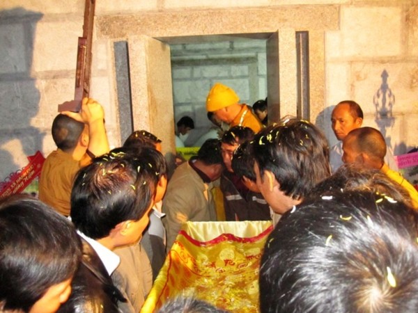 Vào ngày 11 tháng 01 năm 2011 (nhằm ngày 08 tháng chạp năm Canh Dần) lễ di dời hài cốt nhập tháp mới đã được thực hiện.