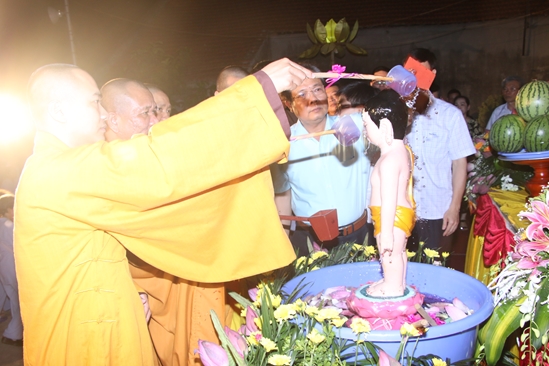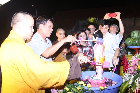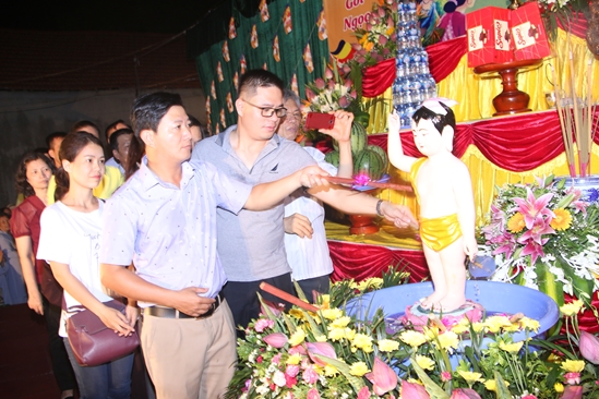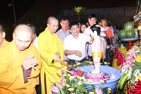 Cuối buổi lễ, Chư tôn đức Tăng Ni, cùng các vị quan khách và nhân dân, Phật tử đã thực hiện nghi thức dâng hương, niệm Phật, cử hành nghi lễ tắm Phật.