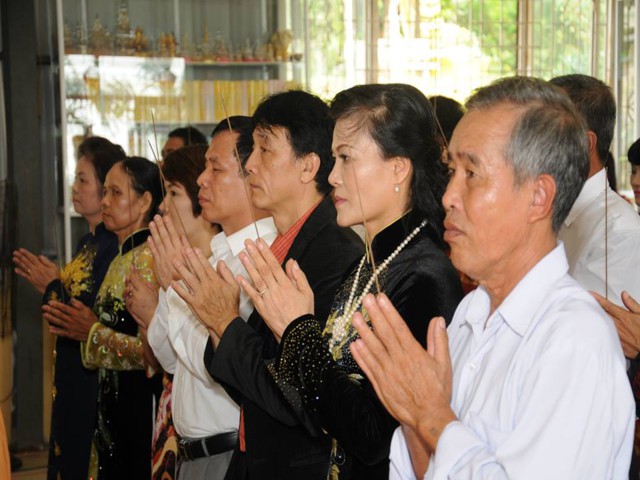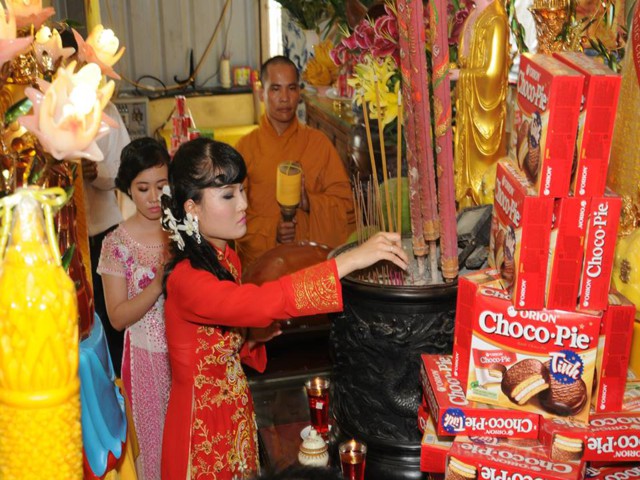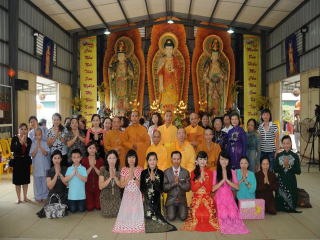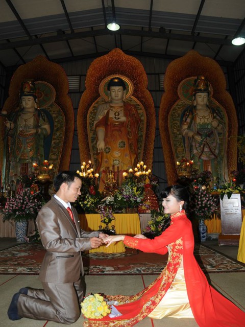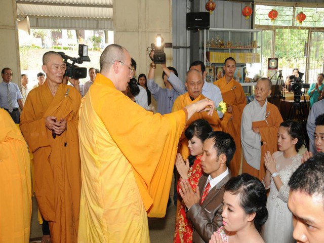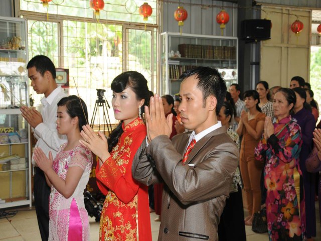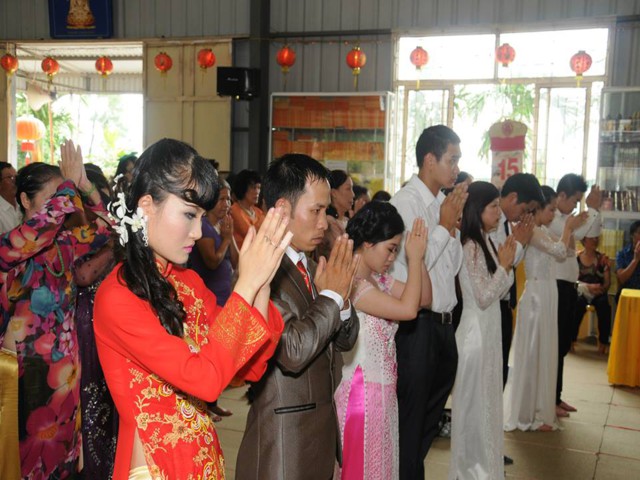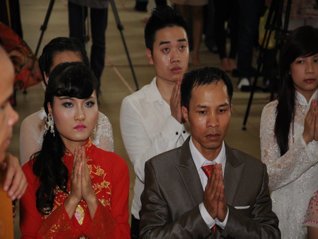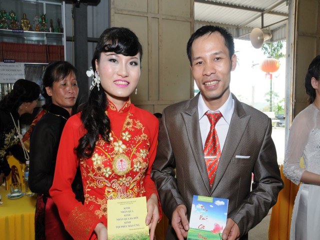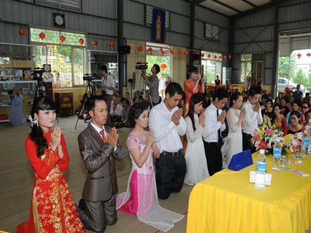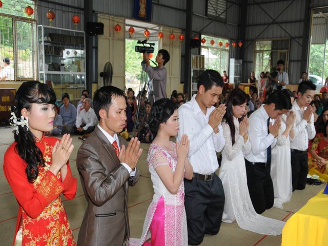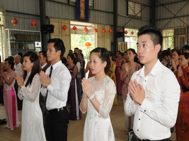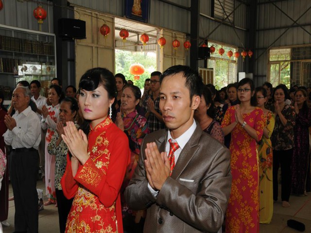 Cùng đại diện của hai bên gia đình và đông đảo bà con, Phật tử gần xa cũng về chung vui với các cặp Tân Lang – Tân Nương.