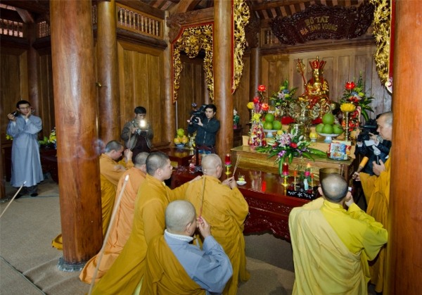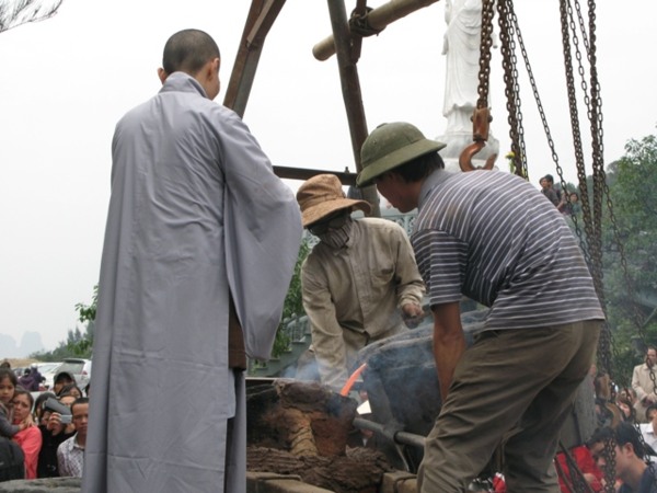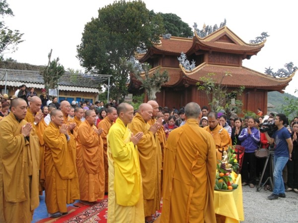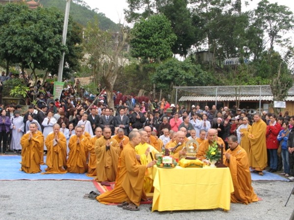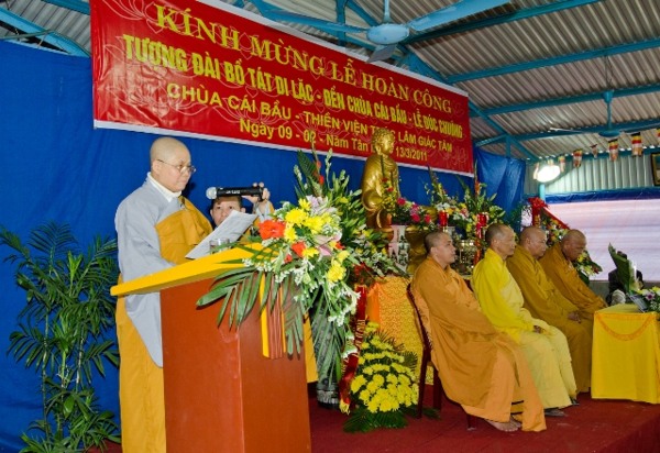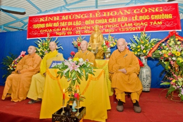 Nhân dịp đầu xuân Tân Mão ( DL.2011- PL. 2555), giữa đất trời rộn rã, người người hân hoan hỷ lạc, được sự chấp thuận của Ban quản trị Thiền phái Trúc Lâm, ngày 10/2 năm Tân Mão ( nhằm ngày 13/3/2011), dưới sự chứng minh của H.T Thích Trí Chơn – Giáo thọ sư Tổ đình Thiền viện Thường Chiếu cùng chư tôn Thiền đức Tăng Ni trong Tông môn: TV Thường Chiếu; TV Trúc Lâm Yên Tử; TVTL Sùng Phúc; TVTL Tây Thiên; TVTL Hàm Rồng; TVTL Tuệ Đức; TV Viên Chiếu, TV Linh Chiếu.v.v. cùng sự tham dự của các cấp chính quyền địa phương, quý đại biểu, chư vị khác quý cùng toàn thể nhân dân Phật tử gần xa, Chùa Cái Bầu- Thiền viện TL Giác Tâm long trọng tổ chức lễ an vị Tôn tượng đức Bồ tát Di Lặc; Lễ hoàn công và an vị các thánh tượng Chùa Đền Cái Bầu đồng thời làm lễ đức chuông Đền.