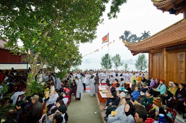 Chùa nằm ở một vị trí tuyệt đẹp ngay trên bờ biển, mặt hướng ra vịnh Bái Tử Long, lưng tự vào sườn núi. Phía Nam liền kề bãi cát dài là nơi du lịch sinh thái và bãi tắm Việt Mỹ – một điểm du lịch được đánh giá là giàu tiềm năng.