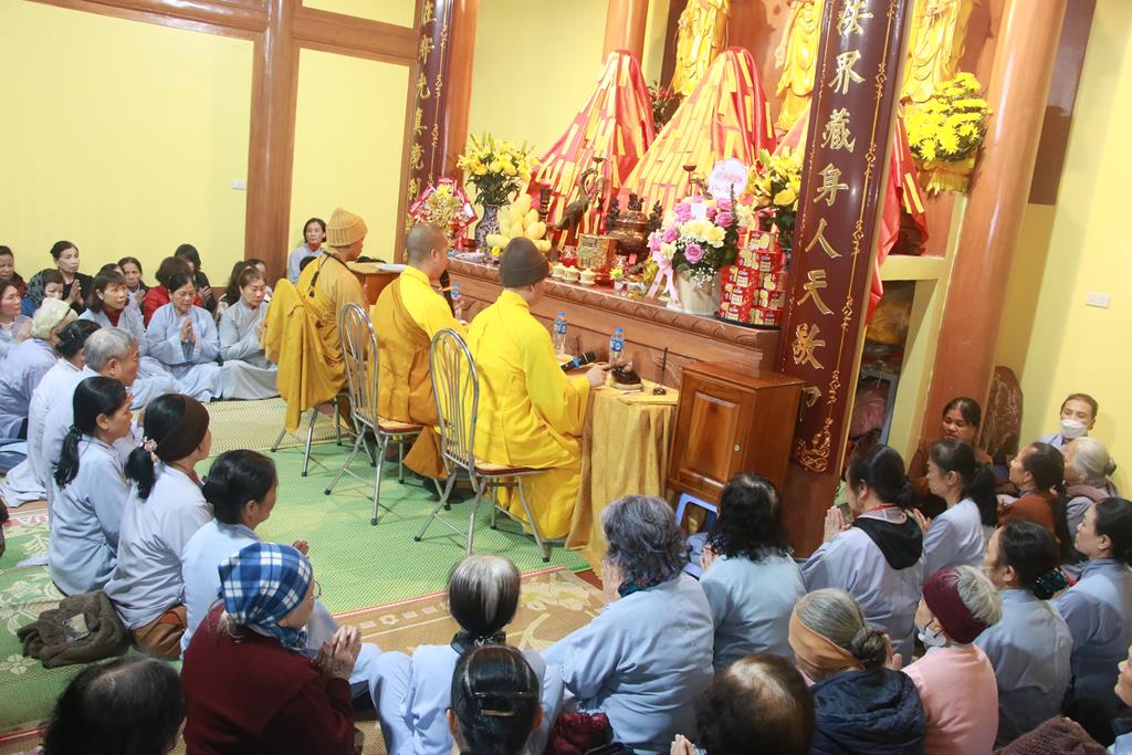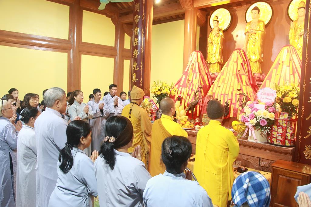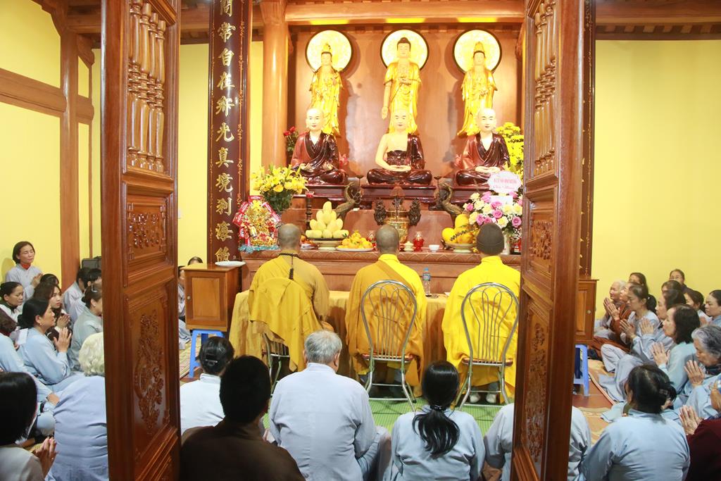 Sau buổi chia sẻ của Đại Đức trụ trì, Đại chúng đã tiến hành nghi thức niêm hương, tụng chú Đại Bi, Bát Nhã và nghi lễ cúng Phật, cúng Tổ v.v… Buổi Lễ An vị tượng Tam Tổ được diễn ra thành công viên mãn.
