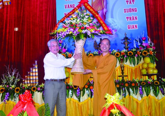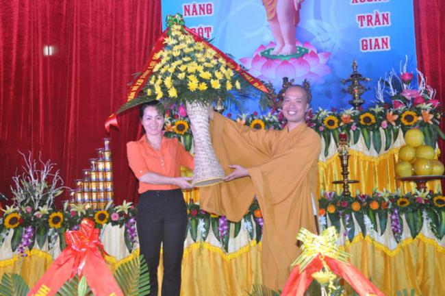 Nhân dịp này, Chư tôn đức Tăng trong chốn trụ xứ đã vinh dự đón nhận lẵng hoa tươi thắm và những phần quà, chúc mừng chư tôn đức Tăng Ni của bà con Phật tử nhân mùa Phật đản PL. 2560 – DL.2016.