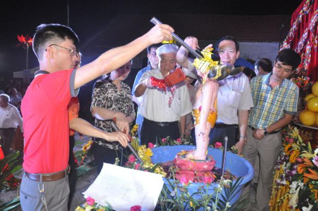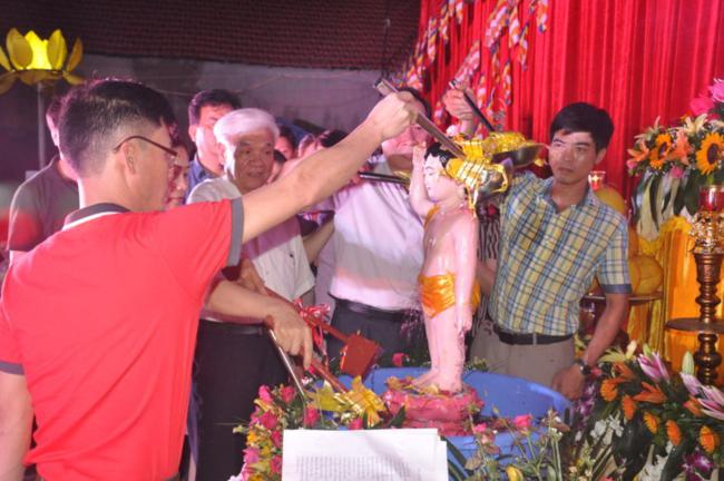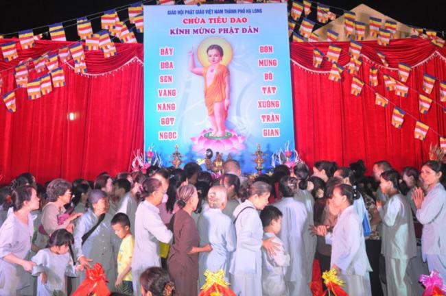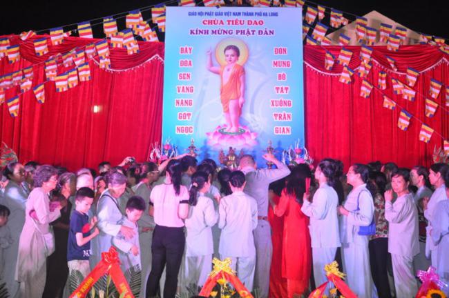 Trước khi kết thúc buổi lễ, Chư tôn đức Tăng Ni, các cấp chính quyền của phường Hà Khẩu, Tp Hạ Long và đông đảo các Phật tử đã cử hành nghi lễ niêm hương, bạch Phật, và nghi lễ tắm Phật theo nghi thức truyền thống của Phật giáo trong không khí hoan hỷ, ấm tình đạo vị nhân ngày đức Phật ra đời.