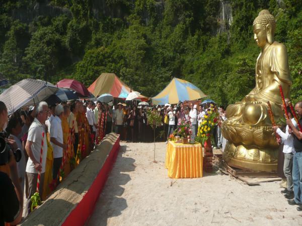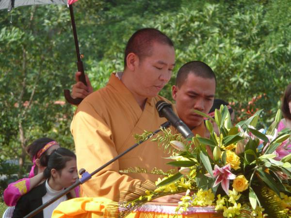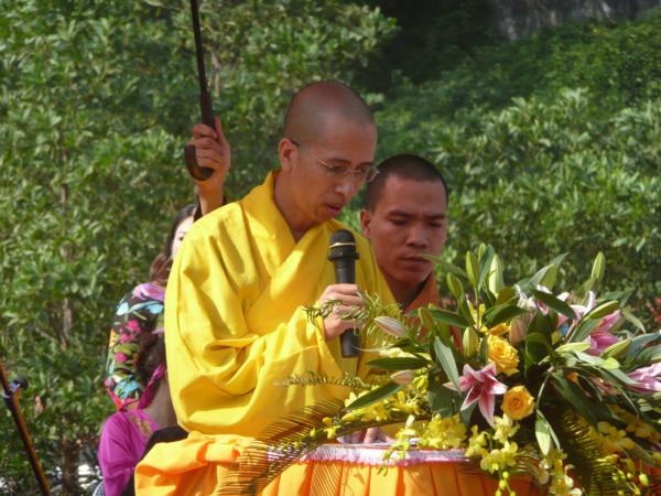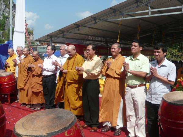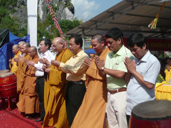 Đúng 9 giờ, sau thời khắc niệm Phật cầu gia hộ, ĐĐ Thích Hiển Thiện – Chánh VP Tỉnh hội PG Quảng Ninh đã tuyên đọc diễn văn khai mạc đại lễ. Tiếp theo, ĐĐ Thích Bản Tường – P. Chánh đại diện Phật giáo Hạ Long, trụ trì bản tự đã tuyên đọc báo cáo, kế hoạch trùng tu xây dựng chùa Lôi Âm Hạ.