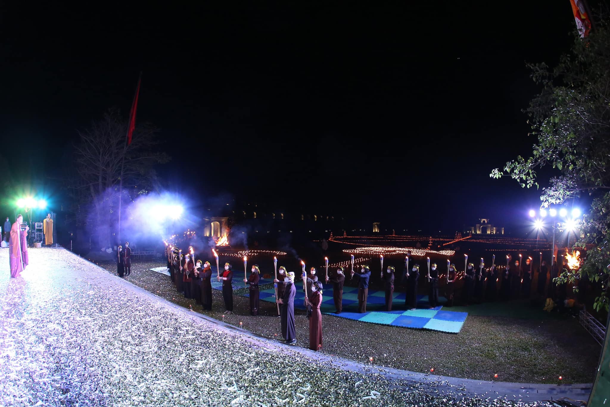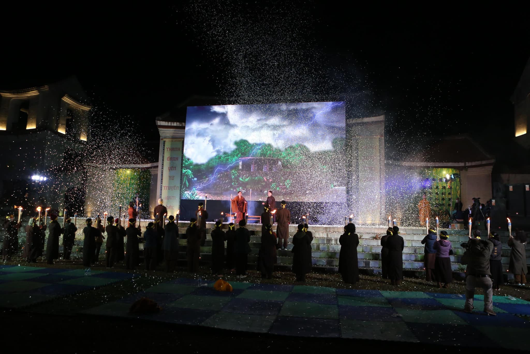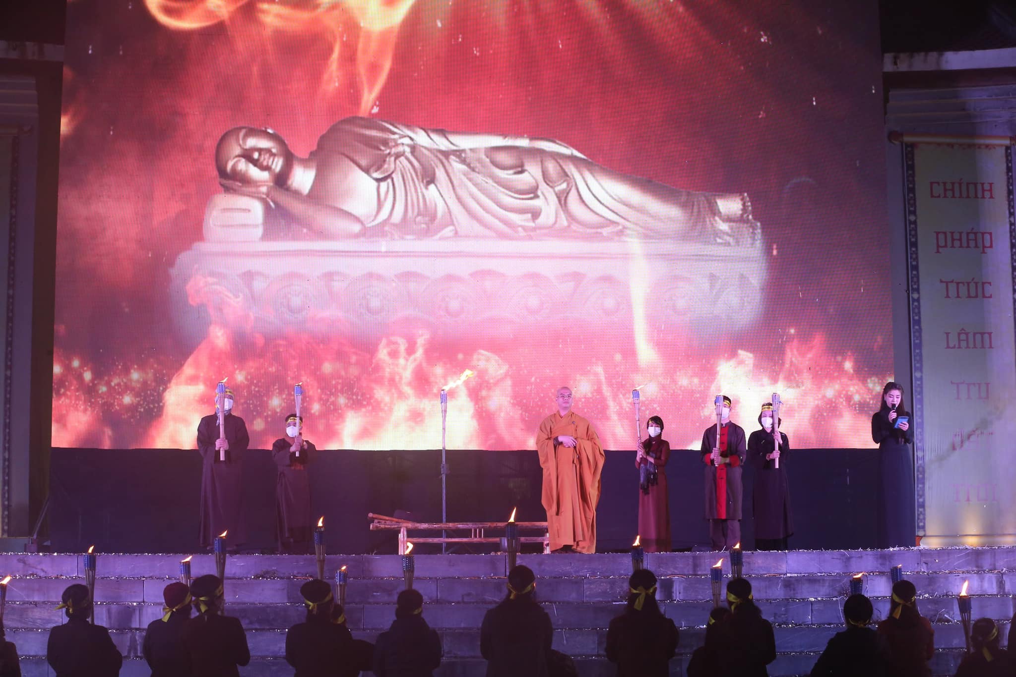 Tại buổi lễ, 15 ngàn ngọn nến được kết thành biểu tượng bánh xe chuyển pháp luân, số 713 và chữ TÂM (tiếng Hán), cùng với 2 ngọn lửa lớn 2 bên cánh gà sân khấu thể hiện tinh thần “ Bão Táp” Trần triều để cúng dàng lên Đức vua Phật Hoàng Trần Nhân Tông, được Phật tử chùa Tân Hải thắp sáng khắp khuôn viên Cung Trúc Lâm, tạo nên một sân nến lung linh, huyền ảo, một không khí hết sức trang nghiêm và linh thiêng. Có thể nói, đây là sự kiện hy hữu, hiếm có từ trước tới nay diễn ra tại nơi đây.