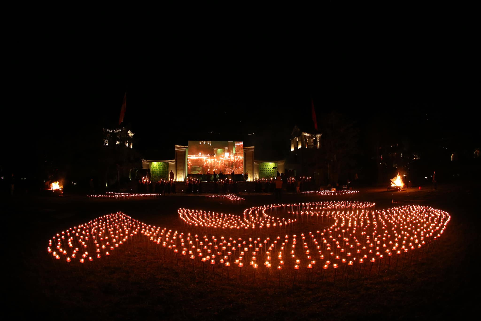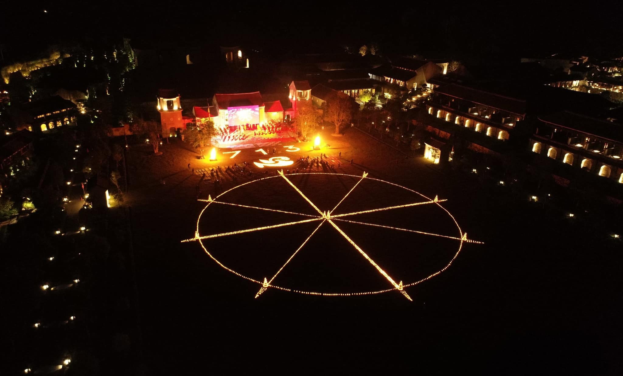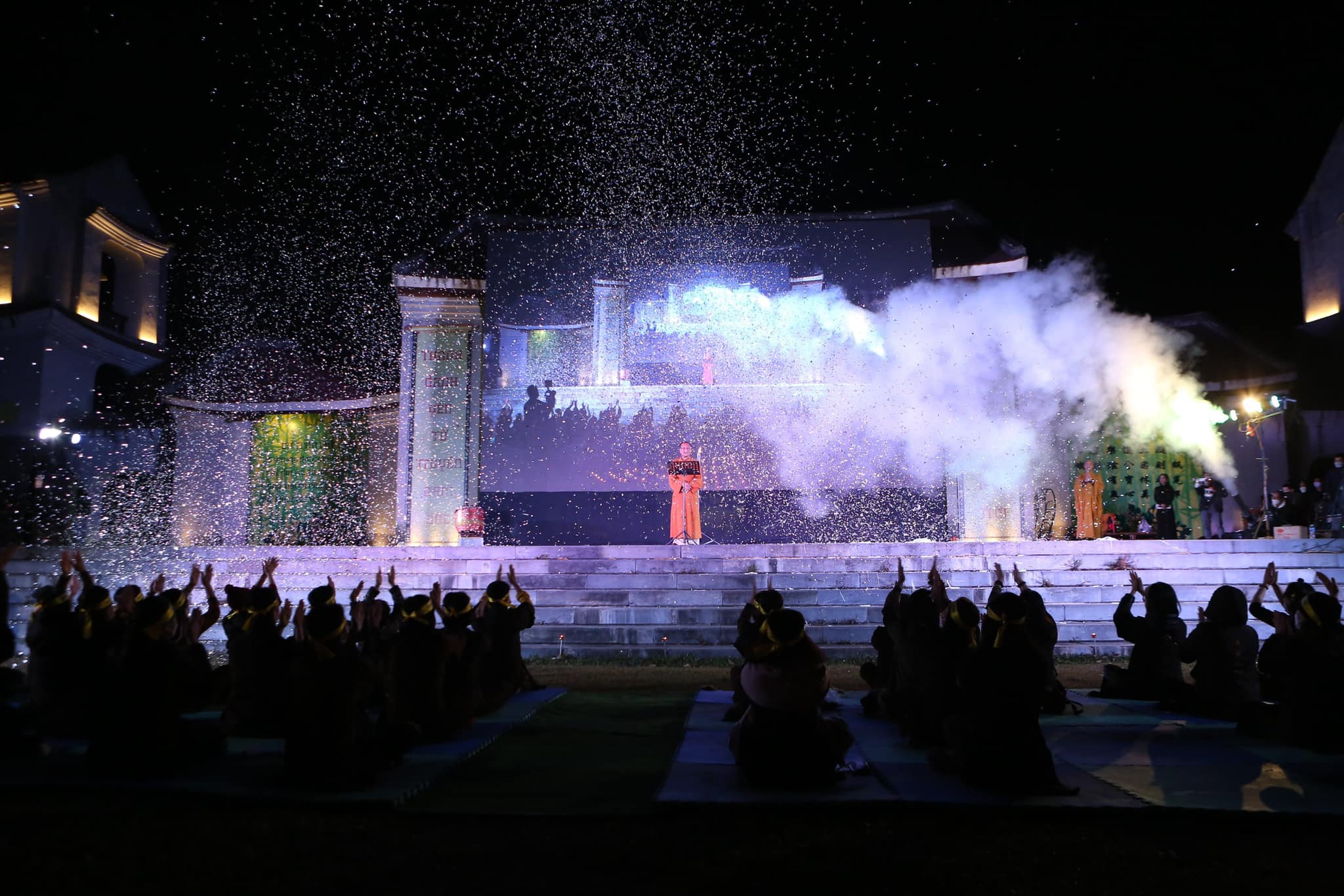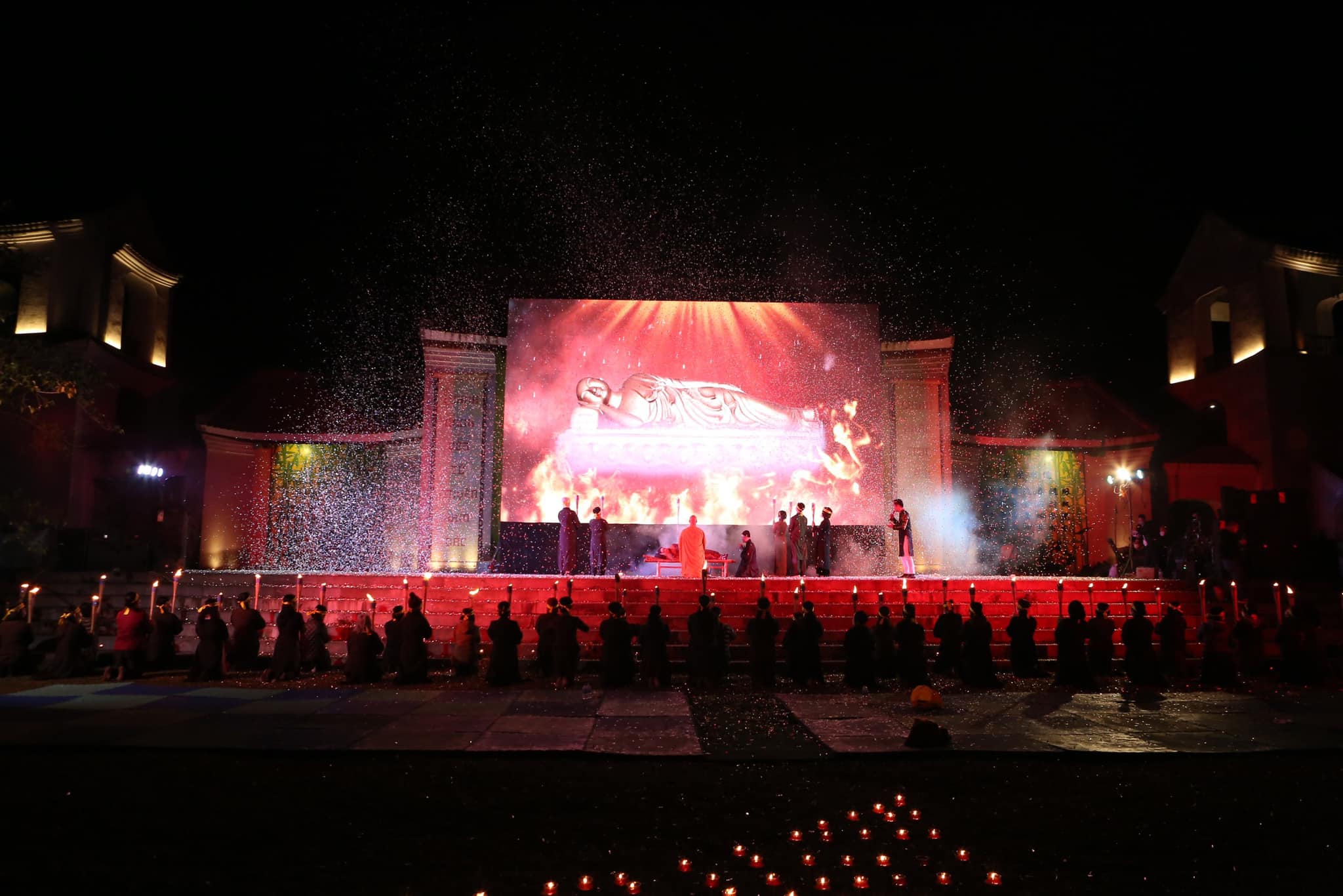 Tại buổi lễ, 15 ngàn ngọn nến được kết thành biểu tượng bánh xe chuyển pháp luân, số 713 và chữ TÂM (tiếng Hán), cùng với 2 ngọn lửa lớn 2 bên cánh gà sân khấu thể hiện tinh thần “ Bão Táp” Trần triều để cúng dàng lên Đức vua Phật Hoàng Trần Nhân Tông, được Phật tử chùa Tân Hải thắp sáng khắp khuôn viên Cung Trúc Lâm, tạo nên một sân nến lung linh, huyền ảo, một không khí hết sức trang nghiêm và linh thiêng. Có thể nói, đây là sự kiện hy hữu, hiếm có từ trước tới nay diễn ra tại nơi đây.