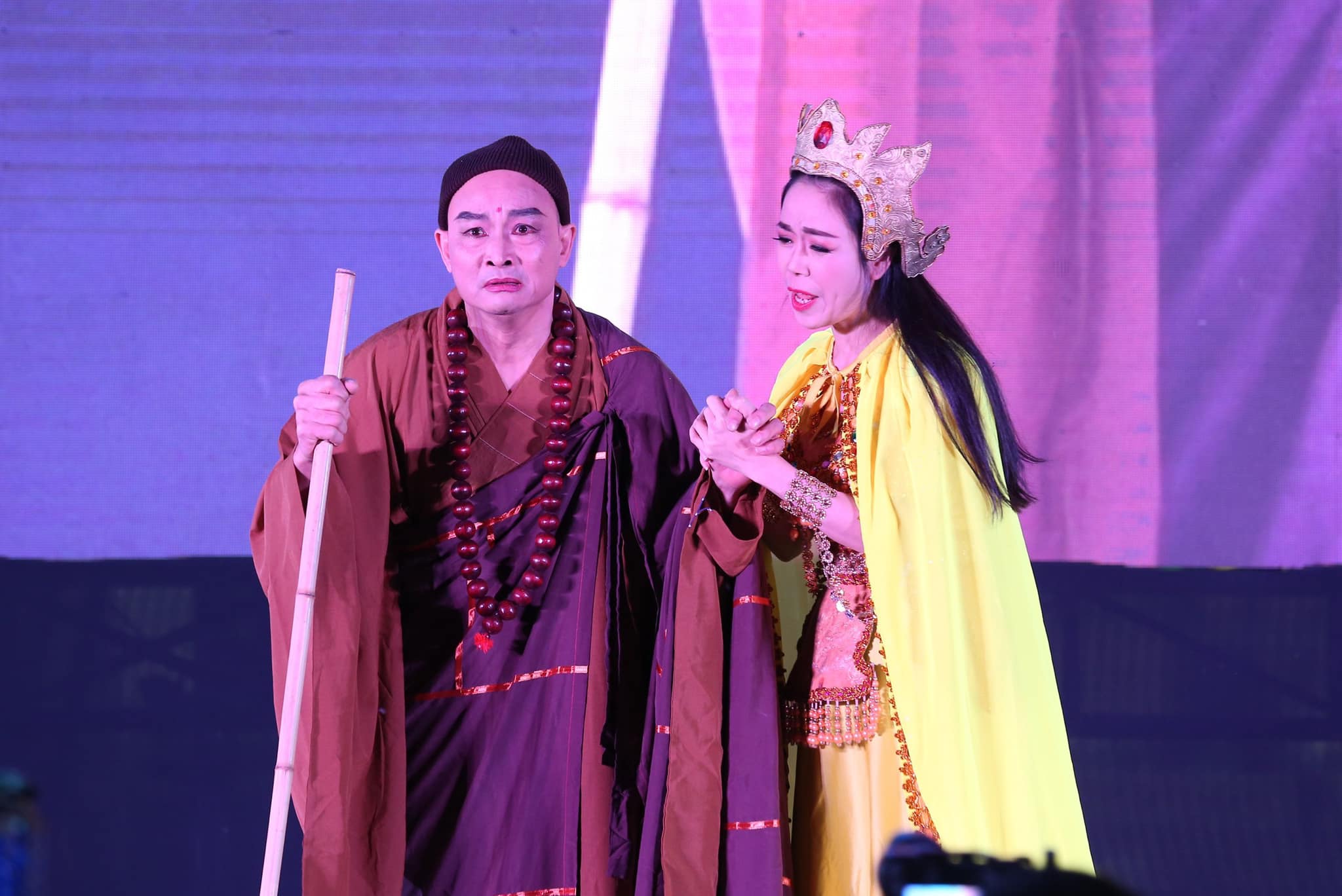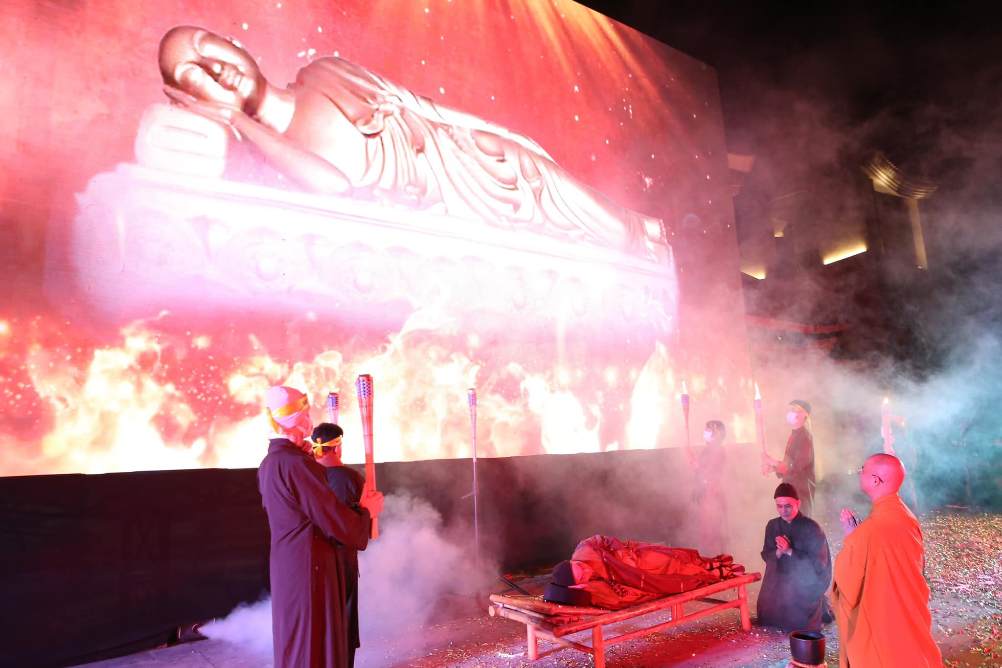 Với không gian linh thiêng, Phật tử trang nghiêm thành kính một lòng hướng về Đức Phật Hoàng, cùng xem các văn nghệ sỹ Ban văn nghệ chùa Tân Hải diễn trích đoạn cải lương: “ Đức Phật Hoàng nhập niết bàn” được chiếu trên màn hình lớn 100 inch và toàn bộ chương trình buổi lễ đã được phát trực tuyến trên kênh facebook của chùa Tân Hải.