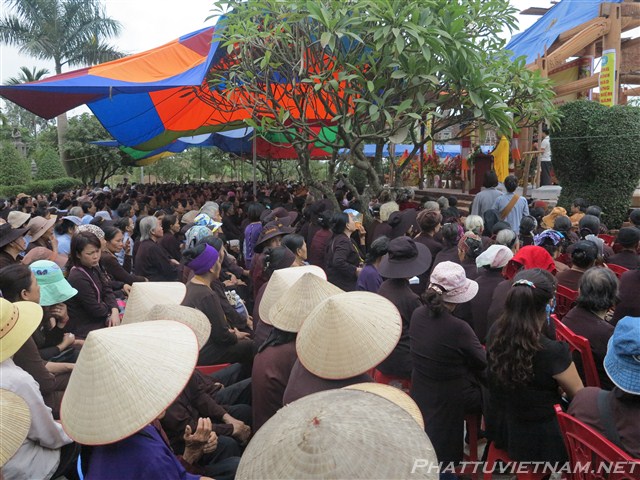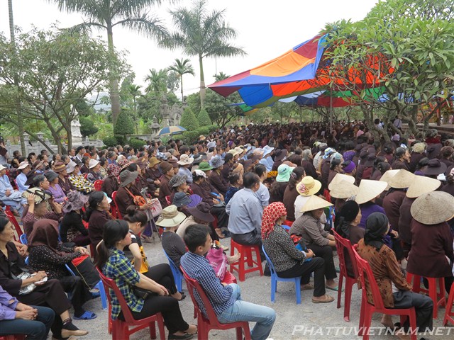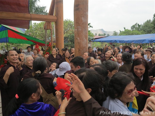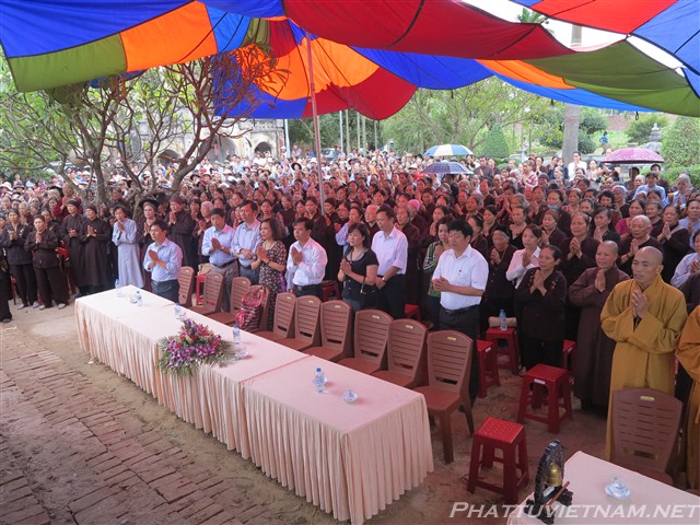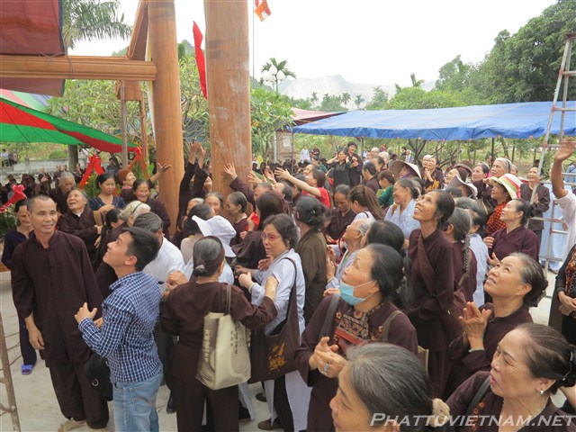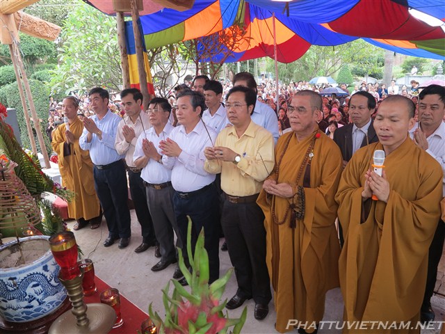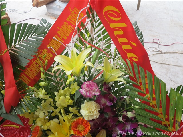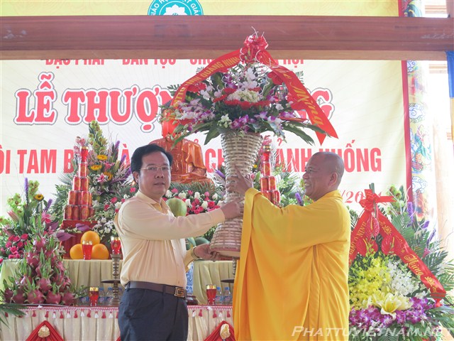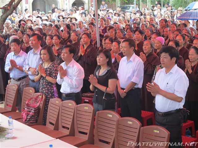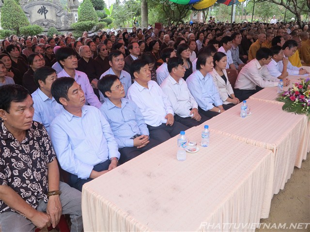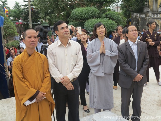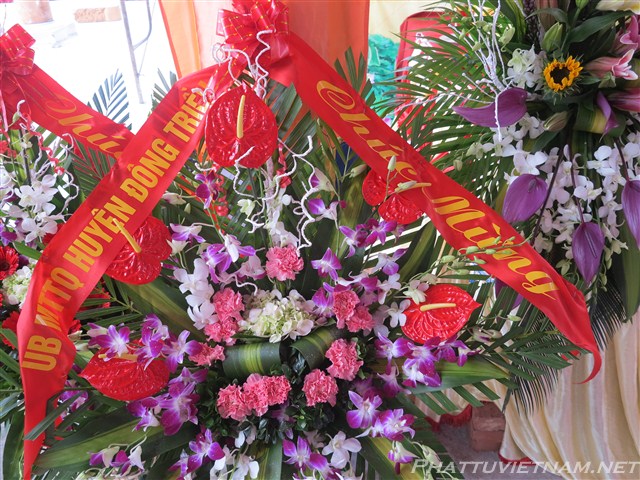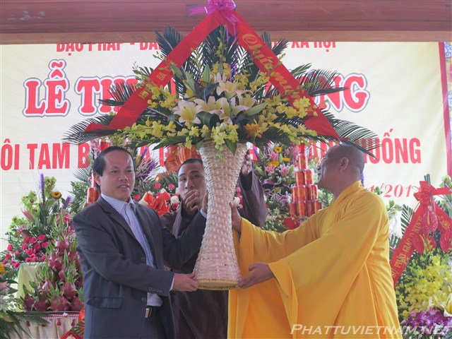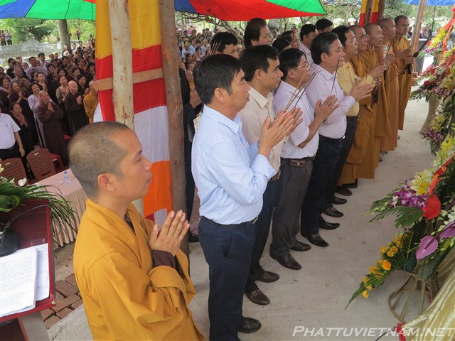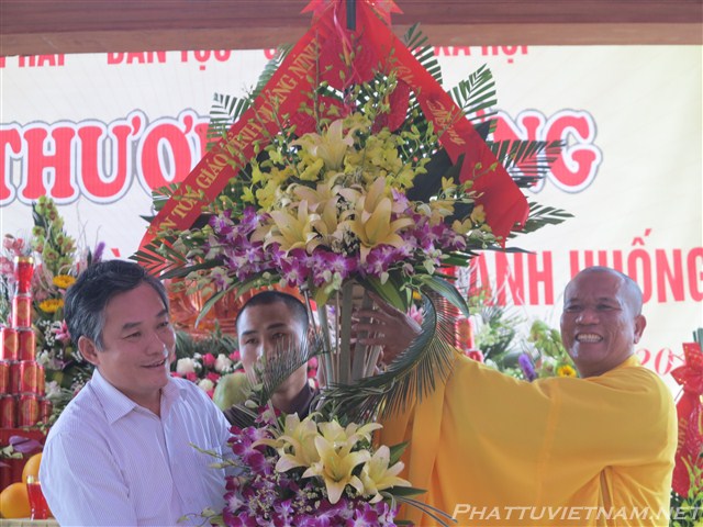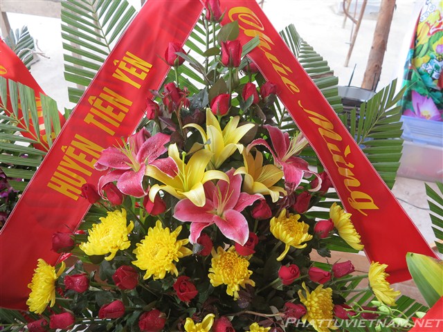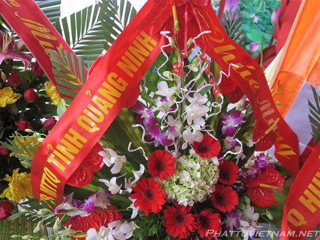 Buổi lễ đón nhận nhiều lẵng hoa chúc mừng của các ban ngành đoàn thể tỉnh Quảng Ninh và địa phương, hòa trong tiếng vỗ tay vang dội, phấn khởi của bà con Phật tử nhân dân.