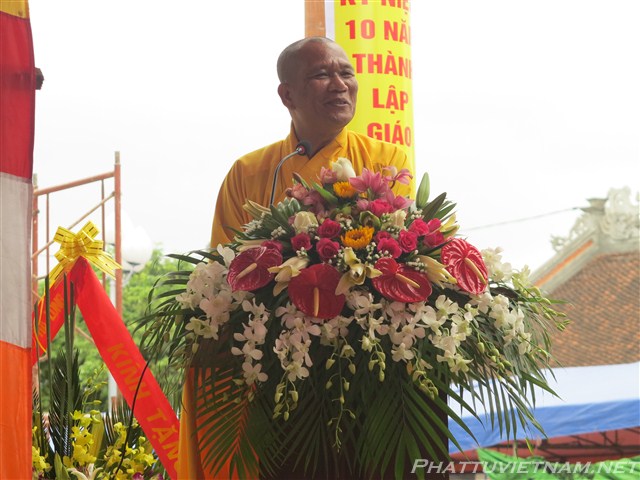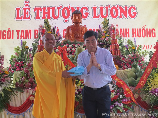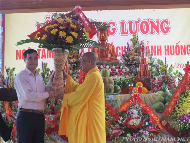 Theo đó, ông Trần Văn Vinh – UV Thường vụ huyện ủy, Phó Chủ tịch UBND huyện Đông Triều, đại diện chính quyền địa phương đã góp lời chia sẻ, nhiệt liệt chúc mừng đại đức trụ trì và tăng ni phật tử chùa Cảnh Huống: “ Chúng tôi biểu dương đại đức Thích Đạo Hiển trong thời gian qua đã gắn bó với đại phương tham gia tích cực các phong trào phụng đạo yêu nước, tốt đời đẹp đạo, đồng hành cùng quý thượng tọa, đại đức, tăng ni trong Ban trị sự GHPGVN tỉnh Quảng Ninh, huyện Đông Triều, xây dựng GHPGVN tỉnh Quảng Ninh phát triển, đặc biệt là công tác xây dựng tu bổ các di tích lịch sử văn hóa, góp phần đem lại bình an, hạnh phúc cho nhân dân.”