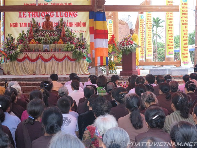 Sáng ngày 30/11/2014, đông đảo chư Tăng Ni, bà con nhân dân khắp nơi tập trung về chùa Cảnh Huống tham dự lễ Thượng lương (cất nóc) ngôi đại hùng bảo điện chùa Cảnh Huống. Người gọi nhau- tay bắt mặt mừng, người bán hàng vui tươi, người xếp ghế, bày biện lễ nghi khẩn trương, khiến không khí chuẩn bị cho lễ hội thật nhộn nhịp. Bà con ai nấy cũng nhanh chóng tìm cho mình một chỗ ngồi trật tự nếu không thì đến lượt mình là… hết chỗ.