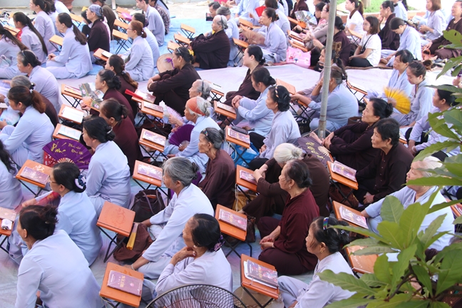 Tiếp đến là thời khóa Tụng kinh “Tám Điều Từ Tâm” và thọ nhận giới luật của người Phật tử do thầy trụ trì làm chủ sám.