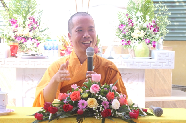Nhân dịp này đại chúng được Đại đức: Thích Tâm Tịnh – ủy viên Ban trị sự GHPGVN tỉnh Quảng Ninh – Trụ trì chùa Tiêu Dao thuyết giảng với đề tài: “Ý Nghĩa Về Hai Tượng Hộ Pháp Ở Trong Chùa”. Đại đức chia sẻ: Khi bước vào cửa hầu hết các chùa ở Việt Nam bạn đều dễ dàng nhận thấy có thờ hai bức tượng với khuôn mặt hiền lành và ác dữ tợn khác nhau. Dân gian vẫn thường gọi bằng cái tên thân thuộc: ông Thiện ông Ác. Đây chính là hai vị hộ pháp với trang phục là bộ áo giáp, một ông tay cầm ngọc còn một ông cầm binh khí trên tay trong tư thế đứng hoặc ngồi.