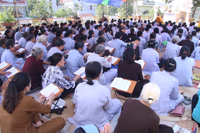 Kết thúc buổi giảng, Đại đức Trụ trì cùng đại chúng tụng thời khóa Kinh: “Nghi Thức Sám Hối – Hồng Danh Bảo Sám”