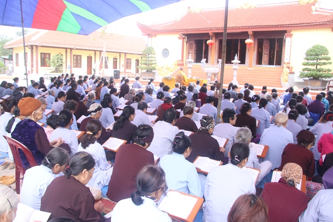 Tiếp đến là thời khóa Tụng kinh “Sám Hối” và thọ nhận giới của người Phật tử do thầy trụ trì làm chủ sám.