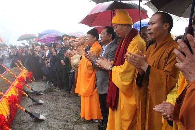 Mặc dù chương trình được diễn ra trên núi cao,thời tiết mưa phùn, đường sá trơn trượt nhiều đoạn lầy lội nhưng vẫn thu hút đông đảo tăng ni, phật tử và du khách gần xa về tham dự buổi lễ khởi công.