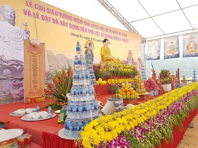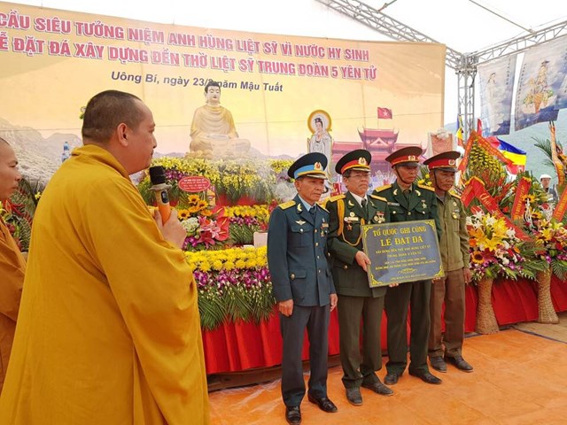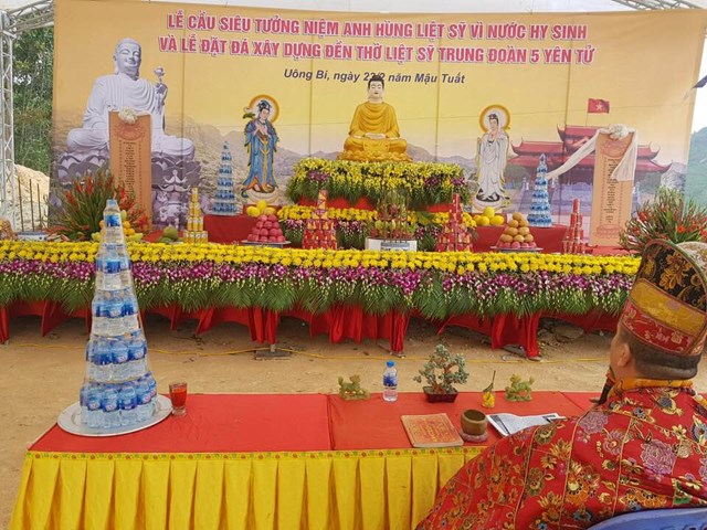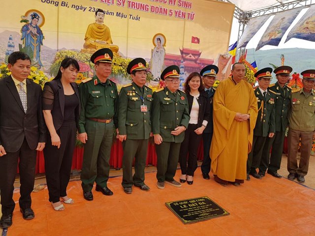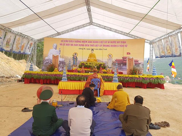Trên tinh thần tri ân, báo ân của Nhà Phật và để tưởng nhớ đến công ơn của các anh hùng Liệt sỹ đã hy sinh cho độc lập tự do của Đất nước, Hội chữ thập đỏ tỉnh Quảng Ninh và Hội cựu chiến binh Trung đoàn 5 đã cung thỉnh Đại đức Thích Quảng Minh – Trưởng BTS GHPGVN huyện Tiên Lãng, thành phố Hải Phòng làm chủ Dự án công trình xây dựng Đền thờ các anh hùng liệt sỹ thuộc Trung đoàn 5 Yên Tử.