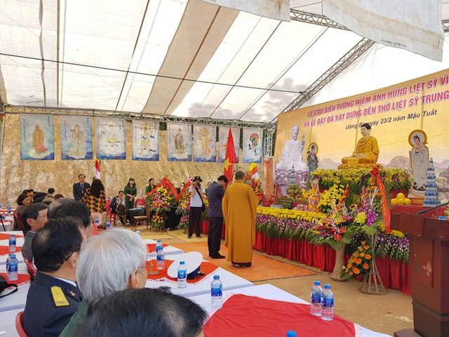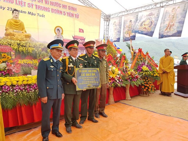 Nhân dịp này Đại đức Thích Quảng Minh đã cùng chư tôn đức Tăng Ni một số tỉnh thành trên cả nước và đông đảo quý quan khách chính quyền đã tổ chức lễ cầu siêu, tưởng niệm các anh hùng liệt sỹ và lễ Đặt đá xây dựng Đền thờ các anh hùng liệt sỹ Trung đoàn 5 Yên Tử.