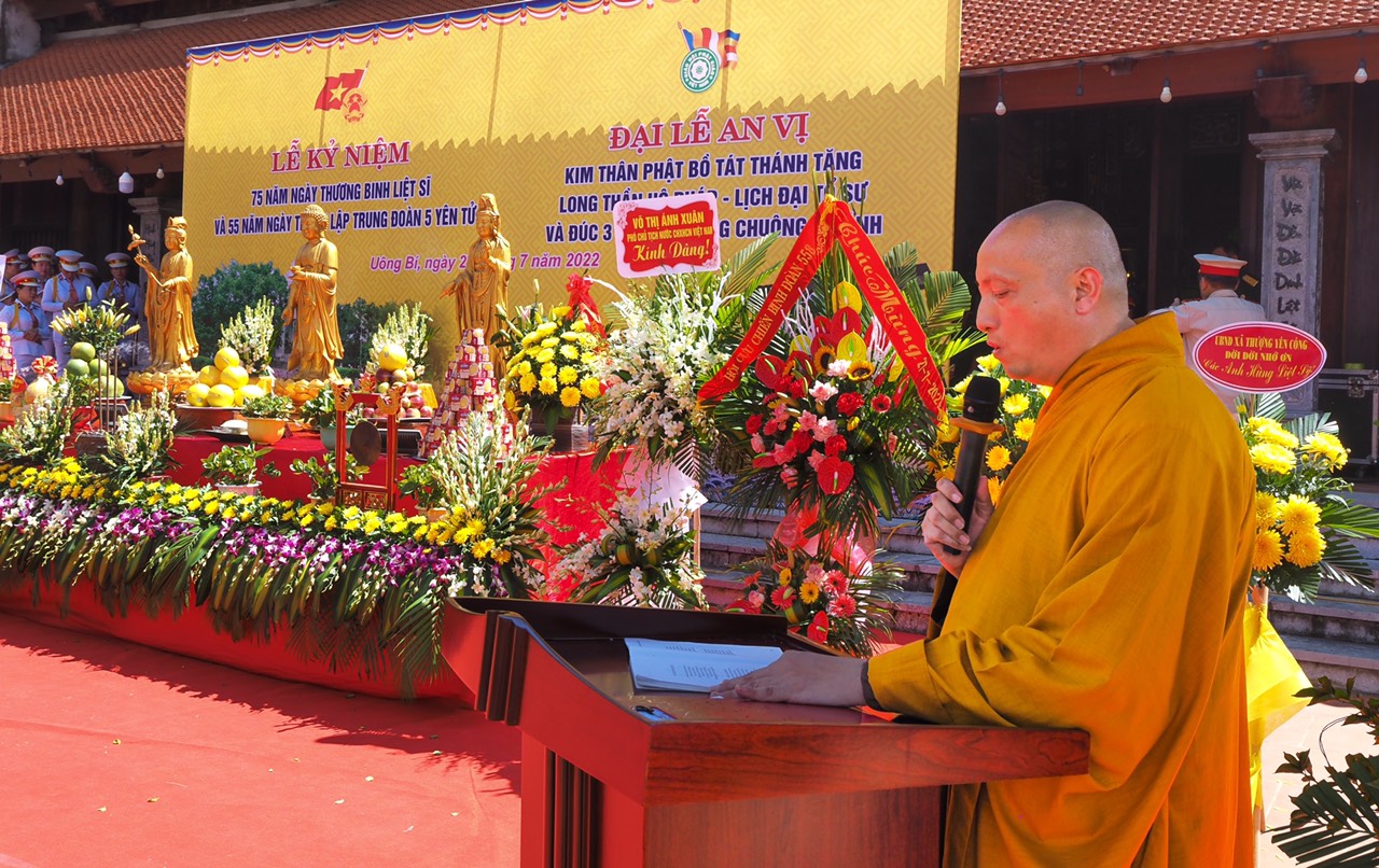 Dịp này cũng đã diễn ra lễ an vị kim thân Phật tượng, Chư đại Bồ Tát, Chư Thánh Tăng, Chư lịch đại Tổ Sư tại chùa Hộ Quốc nằm trong khu quần thể Đền thờ anh hùng liệt sỹ Trung Đoàn 5 – Yên Tử, xã Thượng Yên Công, thành phố Uông Bí, tỉnh Quảng Ninh.