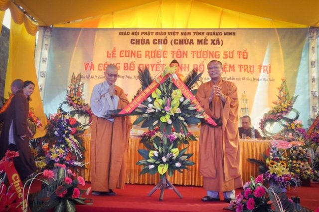 Đ.Đ Thích Quảng Hiển – Ủy viên BTSPG tỉnh Quảng Ninh đã đại diện BTSPG tỉnh đọc quyết định bổ nhiệm Trụ trì cho sư cô Thích Nữ Huệ Thuần và HT. Thích Đạo Quang thay mặt BTS trao quyết định bổ nhiệm này cho sư cô. Đồng thời có lời nhắc nhở, sách tấn sư cô tân trụ trì “Trụ trì là trụ pháp vương gia, trì như lai tạng. Nhưng Trụ trì phải làm được 3 việc: đối với chính quyền, đối với tín đồ, đối với bản thân mình như một cái kiềng ba chân không thể thiếu một, như vậy mới tạo nên một mặt phẳng, phải giữ được sự hài hòa giữa ba bên này. Đối với bản thân, phải giữ gìn giới luật. Giới luật của Phật như mảnh đất bằng phẳng mà từ đó mọi điềm lành sinh ra. Theo đạo Phật ở đây, người trụ trì còn phải biết hướng dẫn nhân dân Phật tử giữ gìn bản sắc văn hóa dân tộc, giữ gìn những nét đẹp ông cha để lại.”