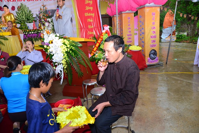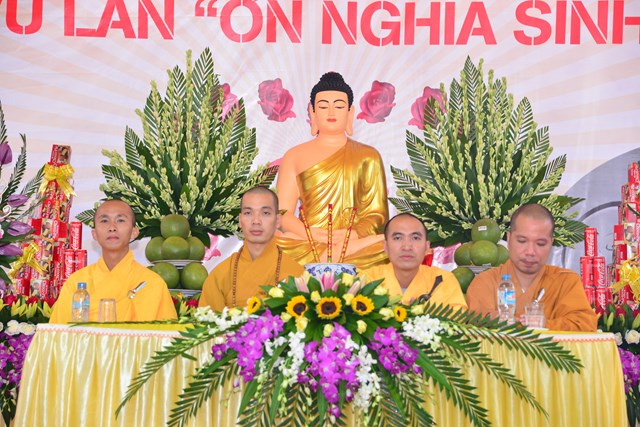 Nhân dịp này, Đại đức Thích Tâm Nguyện đã ban đạo từ tán thán công đức của Đại đức Thích Giác Đạt và các Phật tử mặc dù trời mưa to nhưng đã tới tham dự đại lễ Vu Lan rất đông đủ, trang nghiêm thành kính, tạo công đức lành và hồi hướng công đức đó cho ông bà cha mẹ hiện tiền cũng như đã quá vãng. Đồng thời, Đại đức cũng nói lên tầm quan trọng của chữ Hiếu trong đạo Phật và sự hiếu đạo của Đức Phật Thích Ca Mâu Ni đối với cha mẹ khi Ngài còn tại thế. Tiếp nối truyền thống hiếu đạo của Đức Phật Thích Ca Mâu Ni, Ngài đã có một vị đại đệ tử thần thông đệ nhất được mệnh danh là đại hiếu, đó là Ngài Mục Kiền Liên Bồ Tát, một vị Bồ Tát có tâm hiếu hạnh rất tuyệt vời mà mỗi Phật tử chúng ta cần phải noi theo tấm gương của Ngài.