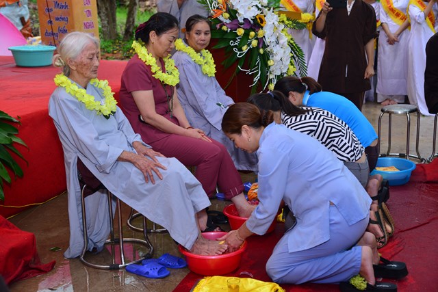 Đặc biệt, ấn tượng và xúc động trong Đại lễ Vu lan Báo Hiếu năm nay tại chùa Trúc Lâm Bảo Quốc , đó là phần nghi thức rửa chân, tặng hoa, dâng trà tri ân cha mẹ. Buổi lễ này đã làm cho phận làm con không khỏi xúc động trước thâm ân của cha mẹ dành cho con cái, thâm ân đó cho dù con cái có làm gì đi chăng nữa thì cũng vẫn không thể nào báo đáp hết được. Có lẽ đây là lần đầu tiên các bậc cha mẹ được con cái của mình trực tiếp thể hiện tình cảm bằng hành động rất đỗi đơn giản, mộc mạc nhưng không phải ai cũng có thể làm được và đâu đó đã có những giọt nước mắt lăn dài trên má đầy xúc động của các bậc làm cha, làm mẹ và những giọt nước mắt đầy ăn năn, hối hận của những người con khi trong cuộc sống đã làm cho cha mẹ phải phiền lòng.