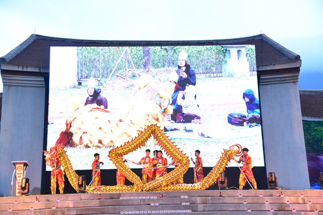 Tiết mục mở màn do Đoàn Lân sư rồng chùa Tân Hải trình diễn