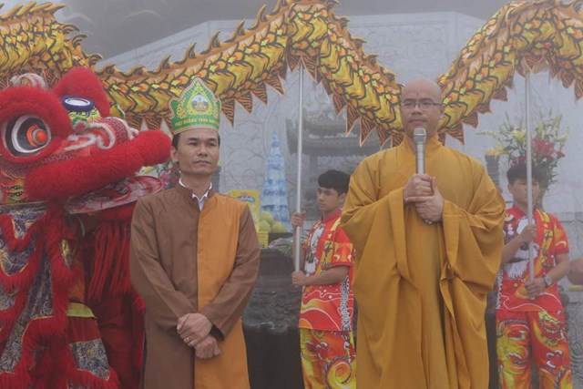Quang lâm, tham dự buổi lễ có sự hiện diện của Thượng tọa Thích Đạo Hiển – Ủy viên HĐTS, Phó trưởng ban, kiêm chánh thư ký BTS GHPGVN tỉnh Quảng Ninh, Phó viện trưởng Học viện Phật giáo Việt Nam tại Hà Nội; Đại đức Thích Quảng Hiếu – Bản tự chùa Tân Hải, trưởng BTC đại lễ, cùng hàng ngàn Phật tử đang tu học tại đạo tràng Tịnh Độ chùa Tân Hải.